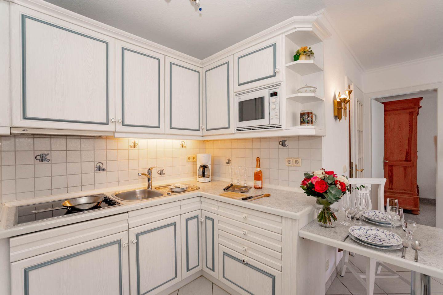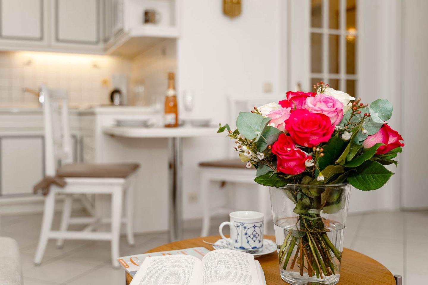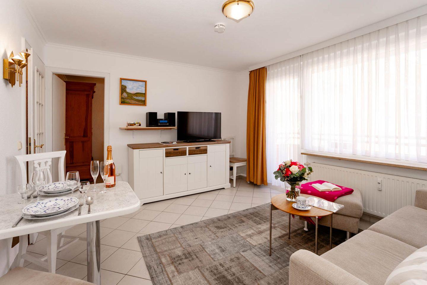 Ein königlicher Name und eine ebensolche Lage: Die 2-Zimmer-Ferienwohnung "Queen Mary" liegt nur 100 Meter von der Westerländer Strandpromenade entfernt im 3. Stock einer gepflegten Wohnanlage mit Fahrstuhl. Morgens vor dem Frühstück baden gehen, nachmittags durch die Fußgängerzone schlendern, abends auf der Promenade den Sundwoner genießen: Um die Lage dieser circa 38 Quadratmeter großen Wohnung beneiden Sie sogar Insulaner.