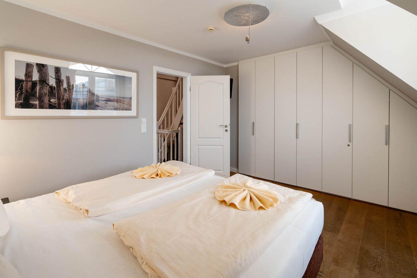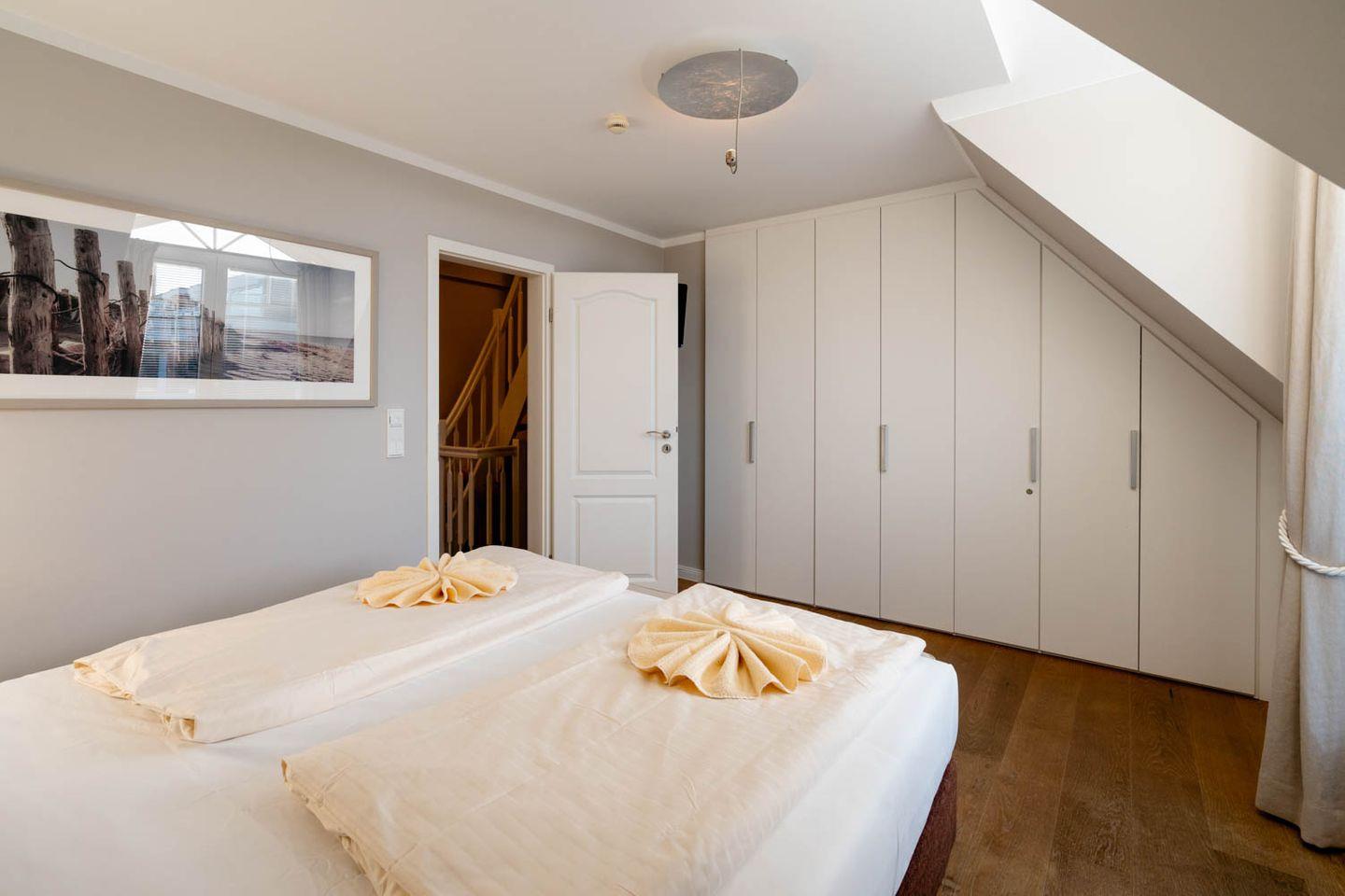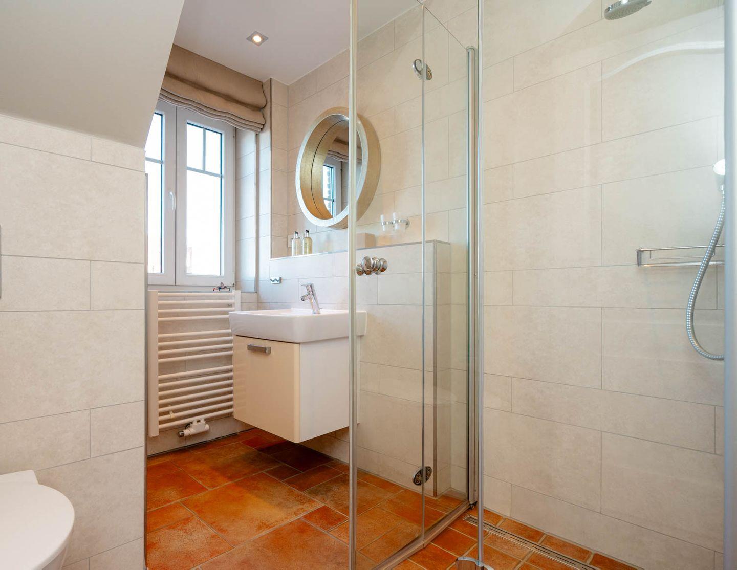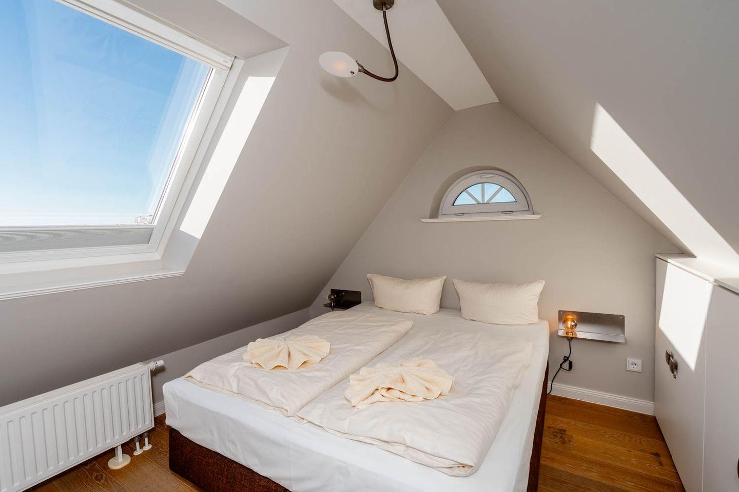 Moin und herzlich willkommen, sagt Ekke 1, diese 100 Quadratmeter große 4-Zimmer-Ferienwohnung, die sich über Erd-, Ober- und Dachgeschoss erstreckt, in einer kleinen Ferienwohnanlage im ruhigeren nördlichen Teil von Westerland liegt. Ein Gartenanteil und eine eigene Terrasse mit Möbeln und Strandkorb gehören dazu, ein hauseigener Parkplatz und ein Minibalkon im Obergeschoss, der tatsächlich Meerblick hat. Und auch die inneren Werte von „Ekke 1“ können sich sehen lassen mit zwei Bädern, eines davon inklusive Waschmaschine/Trockner, und drei Schlafzimmern mit zwei Doppel- und zwei Einzelbetten sowie einem Kinderbett. Das im Landhausstil eingerichtete Wohnzimmer hat sogar einen der typischen nordischen Kaminöfen und eine Fußbodenheizung, die Einrichtung ist sommerlich licht und freundlich. Dass die edle Küche mit Mikrowelle, Cerankochfeld, Cappuccino-Maschine und Backofen voll ausgestattet ist, passt zum perfekten Stil des Hauses. Die Lage der Wohnung ist ruhig und trotzdem strandnah, zu Fuß braucht man von hier aus nur gute fünf Minuten bis an den Strand, bis zur Innenstadt sind‘s höchstens zehn, ein Bäcker findet sich ganz in der Nähe.