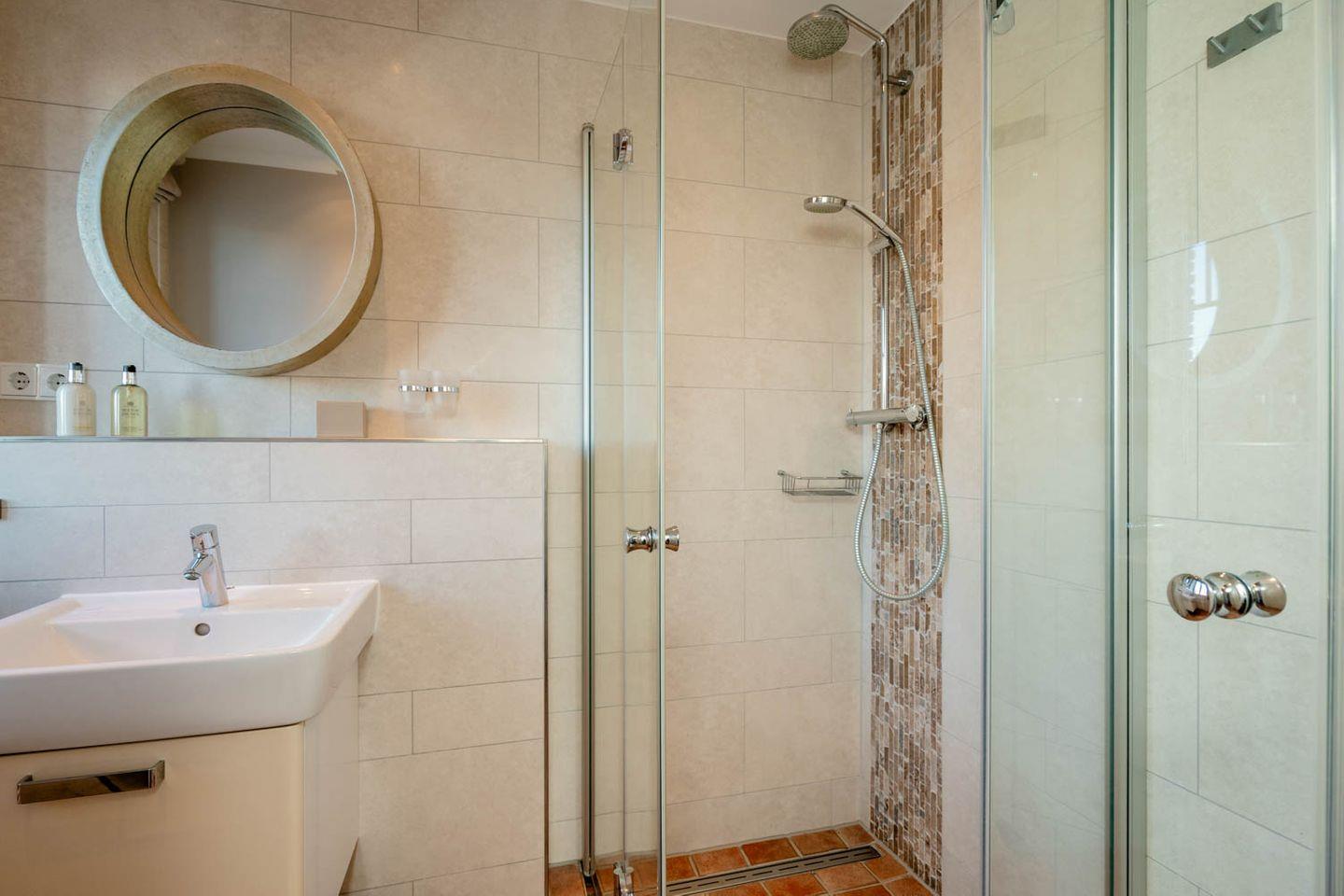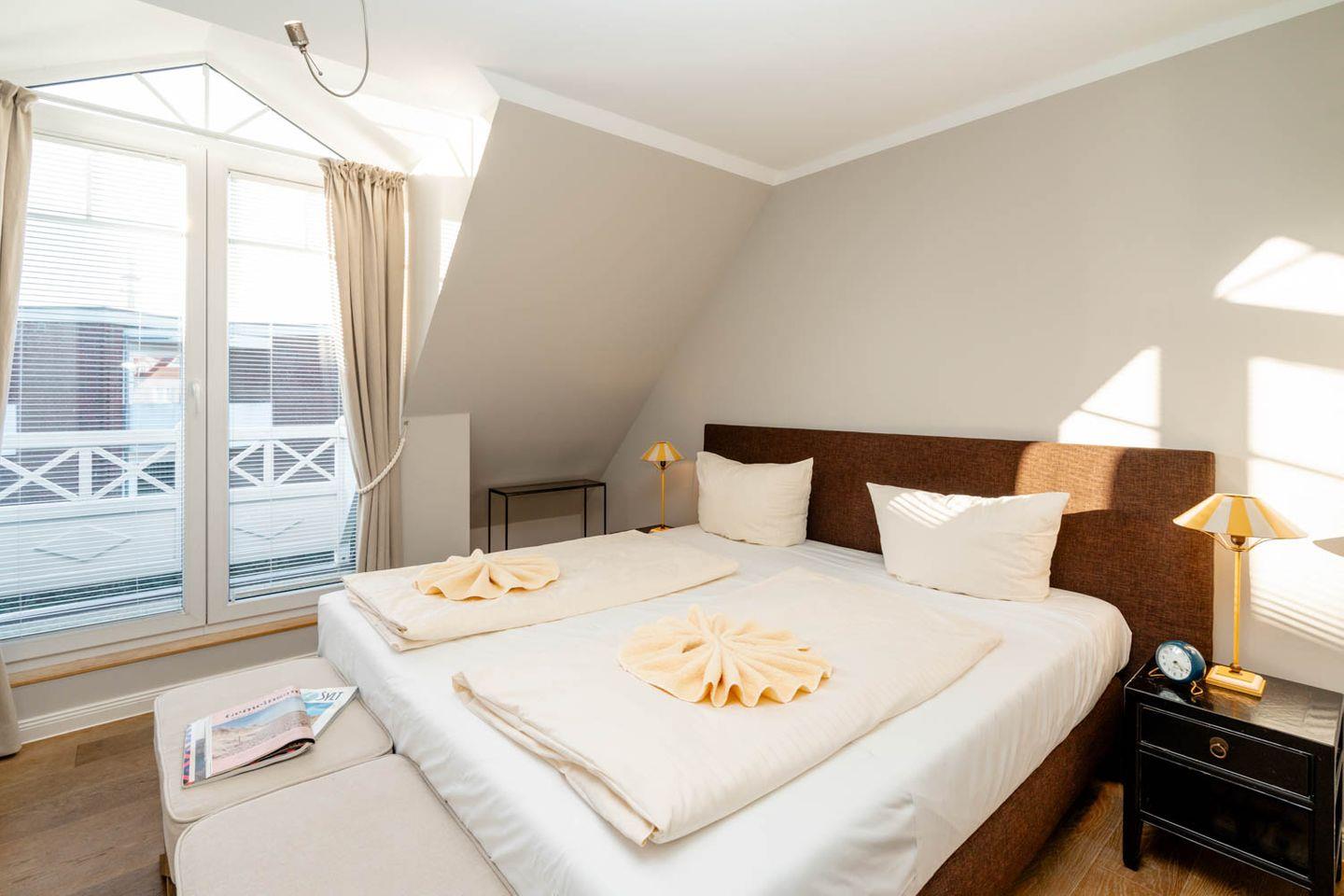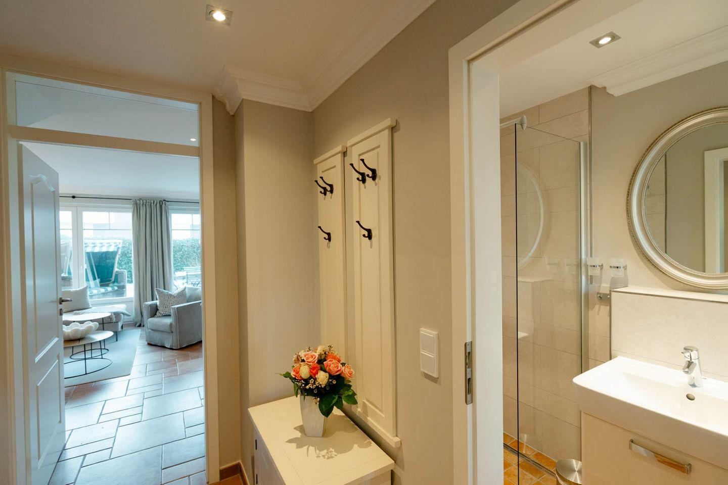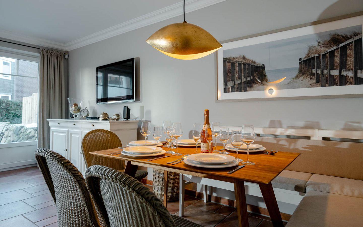 Moin und herzlich willkommen, sagt Ekke 1, diese 100 Quadratmeter große 4-Zimmer-Ferienwohnung, die sich über Erd-, Ober- und Dachgeschoss erstreckt, in einer kleinen Ferienwohnanlage im ruhigeren nördlichen Teil von Westerland liegt. Ein Gartenanteil und eine eigene Terrasse mit Möbeln und Strandkorb gehören dazu, ein hauseigener Parkplatz und ein Minibalkon im Obergeschoss, der tatsächlich Meerblick hat. Und auch die inneren Werte von „Ekke 1“ können sich sehen lassen mit zwei Bädern, eines davon inklusive Waschmaschine, und drei Schlafzimmern mit zwei Doppel- und zwei Einzelbetten sowie einem Kinderbett. Das im Landhausstil eingerichtete Wohnzimmer hat sogar einen der typischen nordischen Kaminöfen und eine Fußbodenheizung, die Einrichtung ist sommerlich licht und freundlich. Dass die edle Küche mit Mikrowelle, Cerankochfeld, Cappuccino-Maschine und Backofen voll ausgestattet ist, passt zum perfekten Stil des Hauses. Die Lage der Wohnung ist ruhig und trotzdem strandnah, zu Fuß braucht man von hier aus nur gute fünf Minuten bis an den Strand, bis zur Innenstadt sind‘s höchstens zehn, ein Bäcker findet sich ganz in der Nähe.