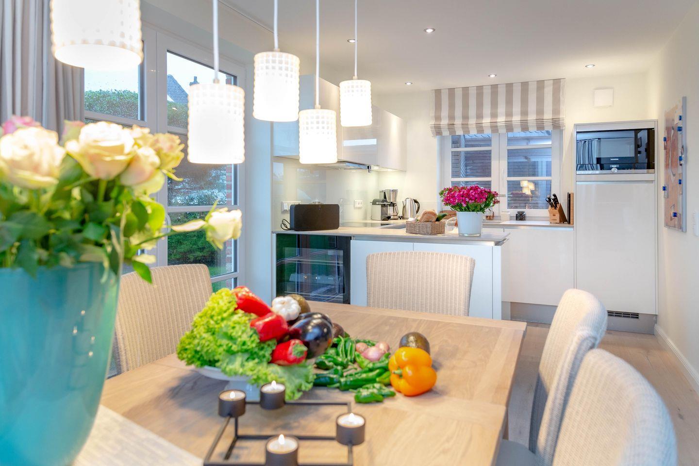 Erleben Sie ein stilvolles Ambiente im modernen Landhausstil, harmonisch ergänzt durch maritime Akzente – eine perfekte Wohlfühloase für Ihren Urlaub. Die großzügigen, lichtdurchfluteten Wohn- und Schlafbereiche laden selbst an Regentagen zum Entspannen ein und bieten viel Platz für gesellige Stunden mit Familie und Freunden.