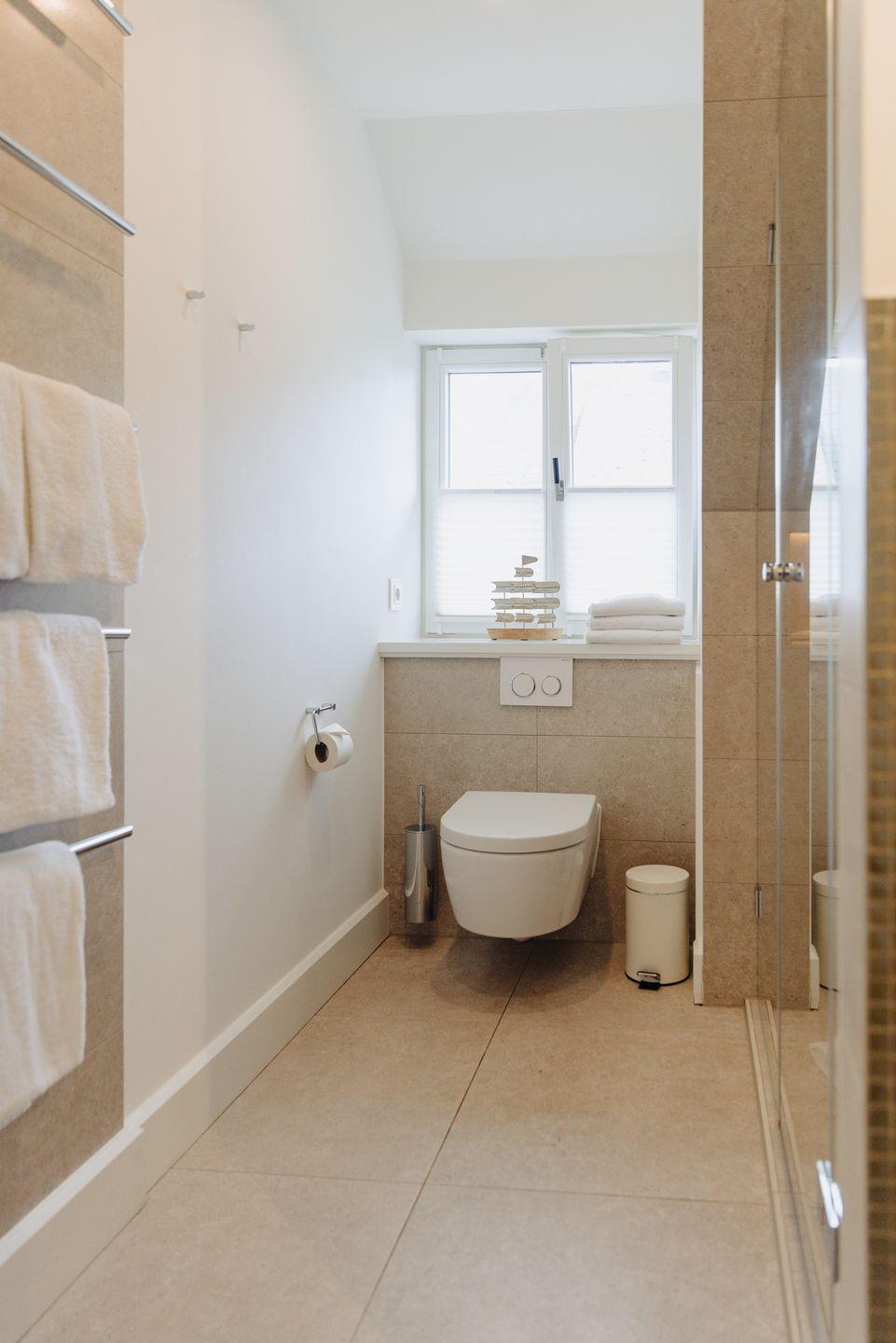 Einen Raum weiter wartet ein Tageslicht-Badezimmer, welches eine helle und einladende Atmosphäre versprüht.