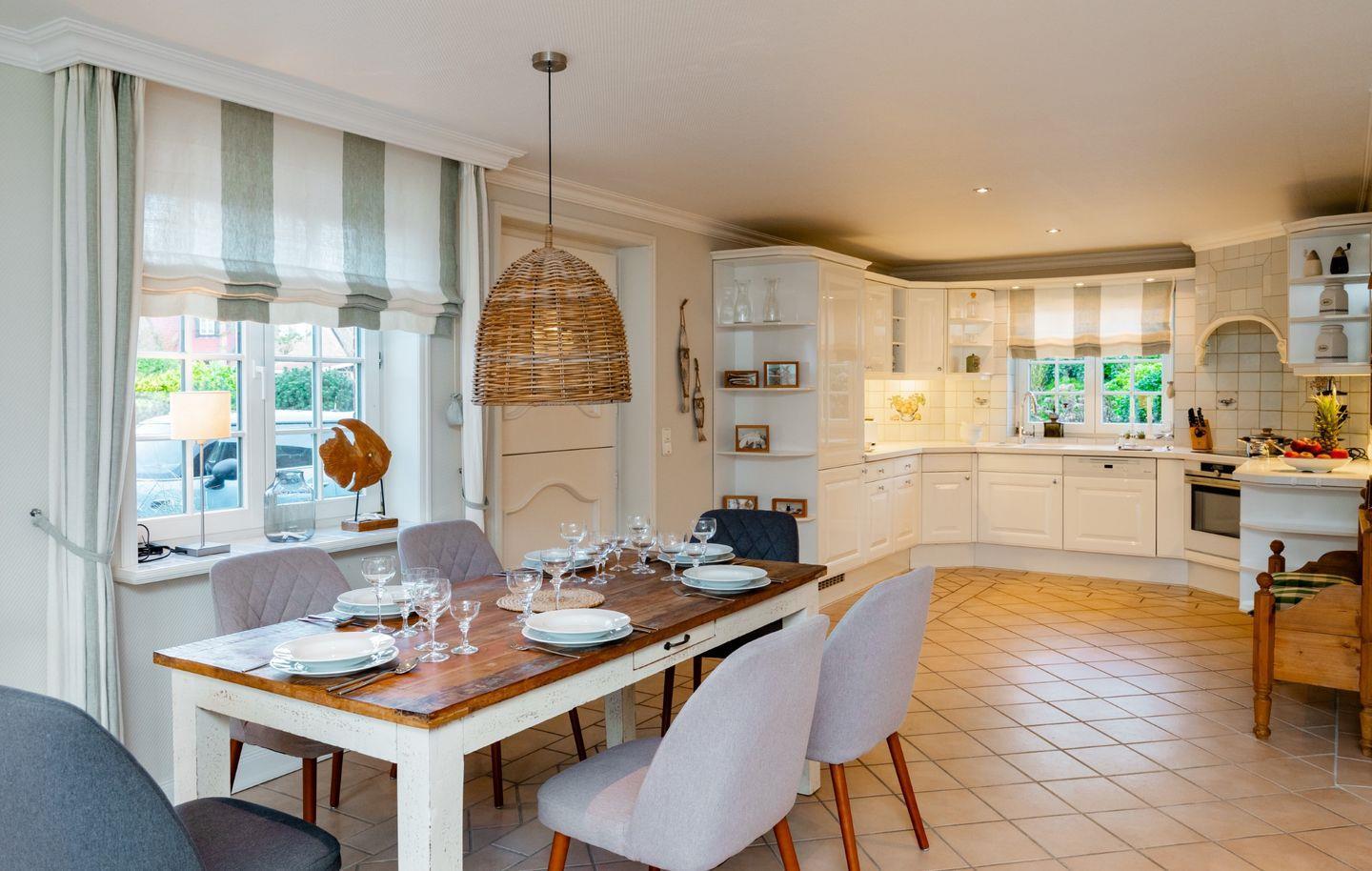 Ein lichtdurchfluteter Wohnbereich mit offener Küche bildet das Herzstück des Hauses. Die schöne Lage unweit vom Wattenmeer bietet ideale Voraussetzungen für Spaziergänge. Ob vor dem Kachelofen, auf der geschützten Südterrasse, in der Sauna oder auf dem Balkon - hier finden Sie sicher schnell Ihren Lieblingsplatz...!