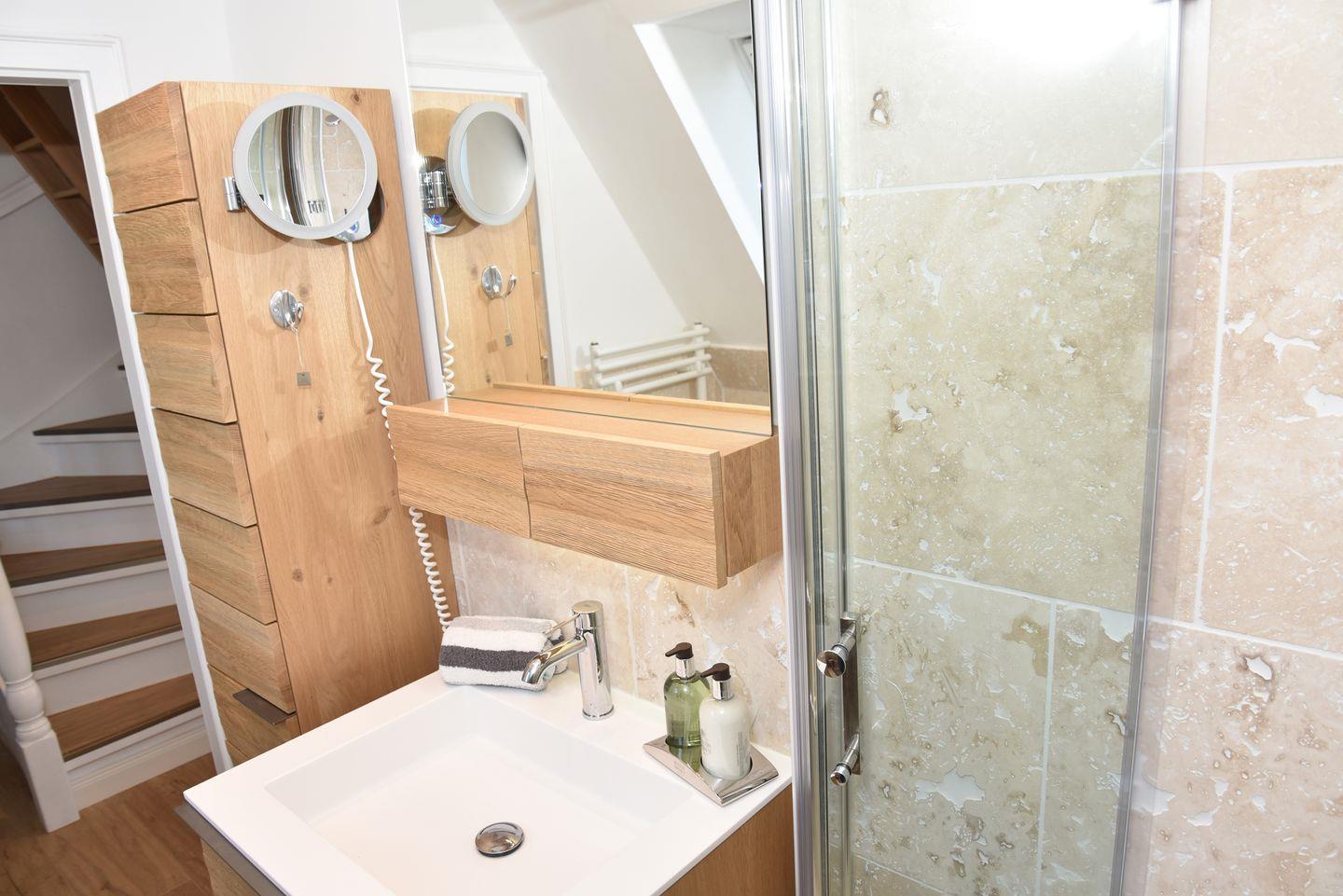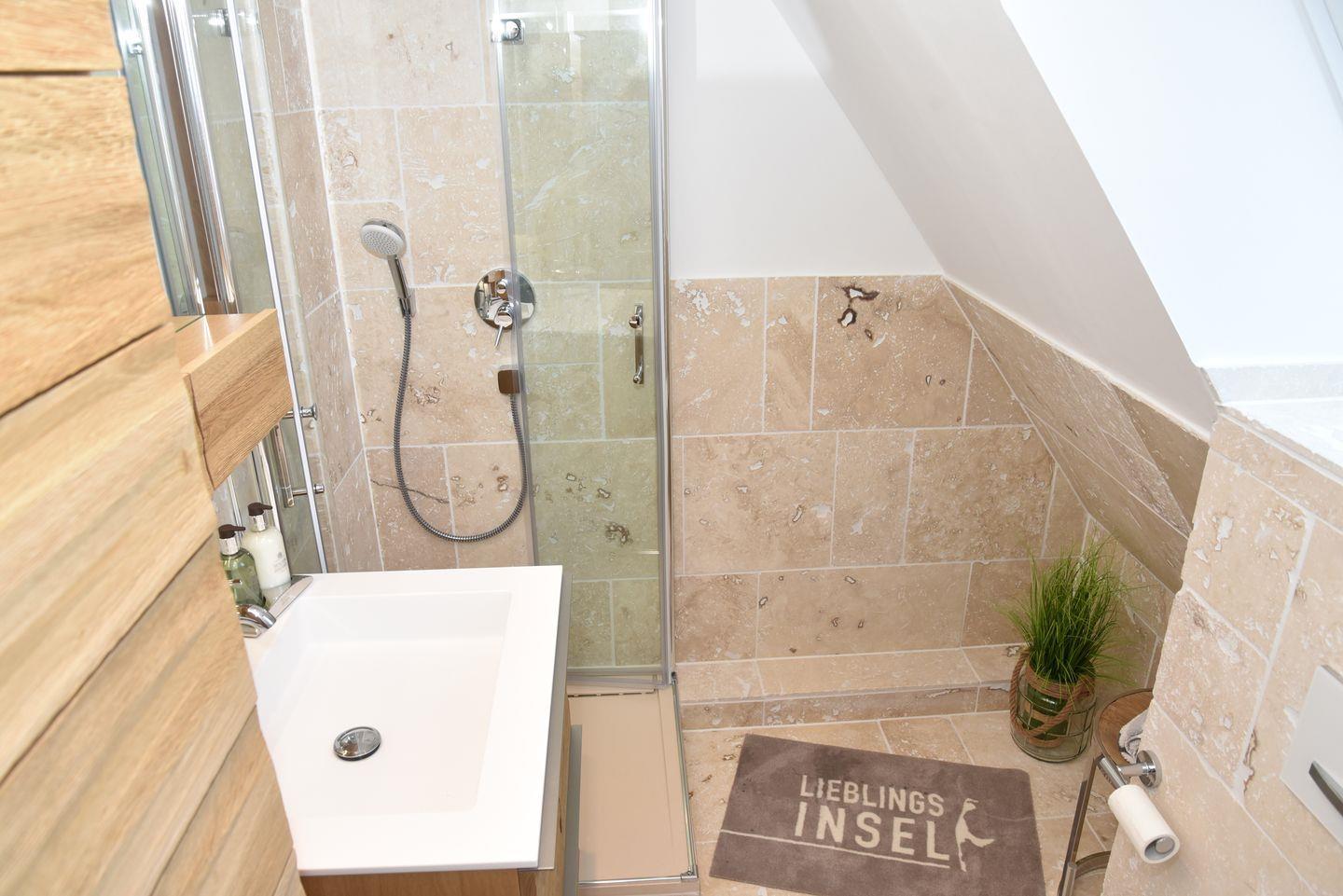 Im Obergeschoss erwartet Sie ein heller und moderner Wohn- und Essbereich mit einer voll ausgestatteten Küchenzeile, wo Sie köstliche Mahlzeiten zubereiten können. Genießen Sie entspannte Stunden auf dem Südbalkon und lassen Sie die Seele baumeln. Ein Duschbad steht ebenfalls zur Verfügung, für Ihren Komfort und Ihre Bequemlichkeit.