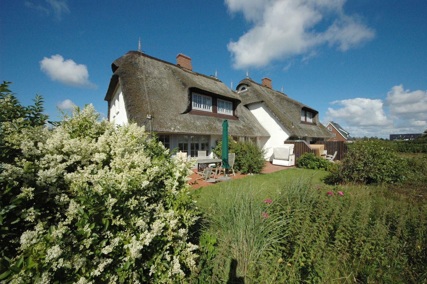 Gemütlicher Hausteil am Strandrand in Wenningstedt mit Terrasse und Blick auf Heidefläche.