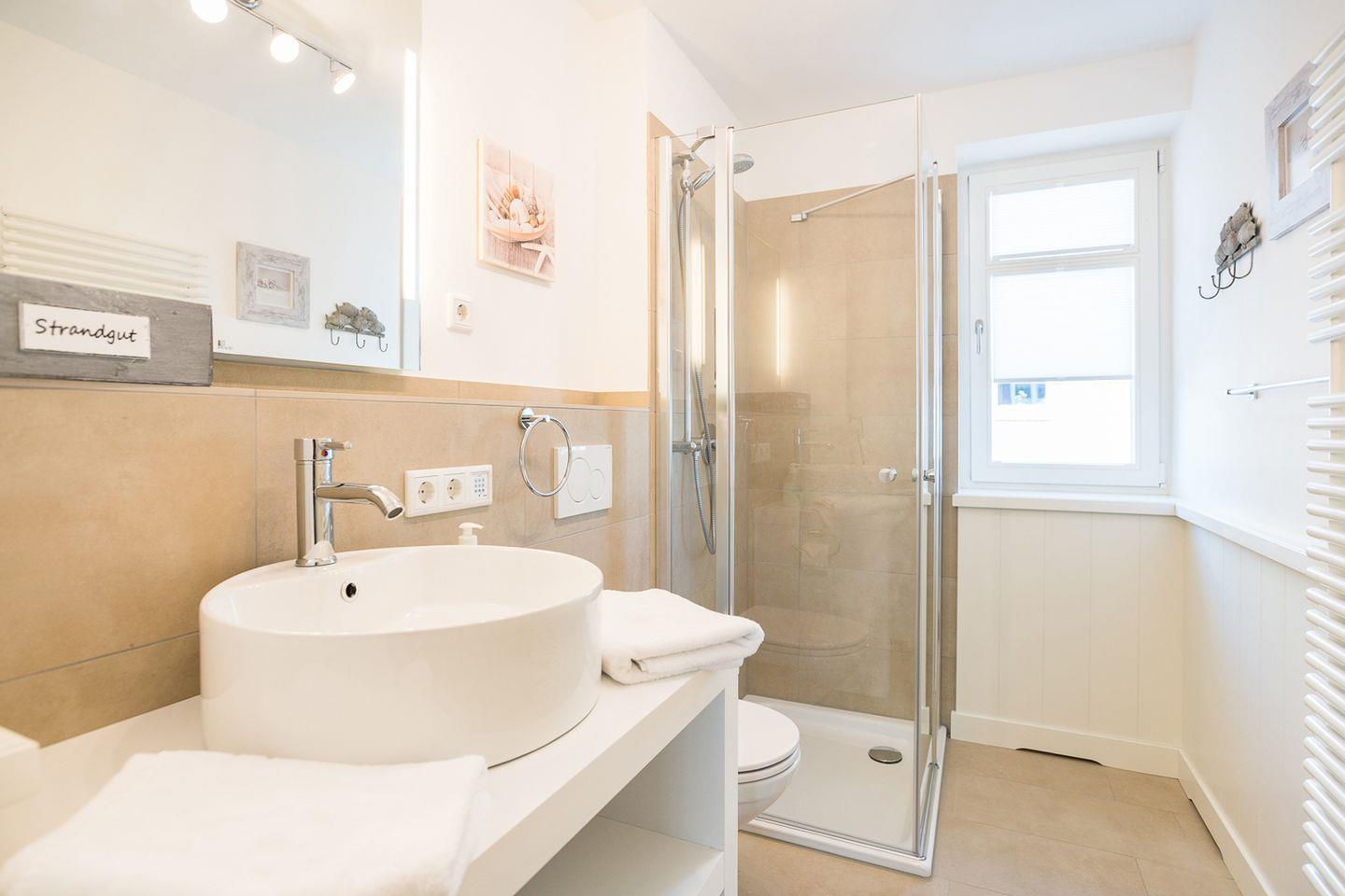 Die extravagante Obergeschoss-Wohnung bietet Platz für 3 Personen auf großzügigen 45 qm. Sie verfügt über einen Doppelschlafraum, einen Einzelschlafraum sowie ein modernes Duschbad – alles auf einer Ebene. Der Südbalkon lädt mit hochwertigen Gartenmöbeln zum Verweilen ein. Die elegante Küche fügt sich vorzüglich in den Gesamtstil ein und ist komplett ausgestattet. Erdtöne prägen das Ambiente des Wohnraums, während die Bäder mit zeitgemäßem Design punkten.