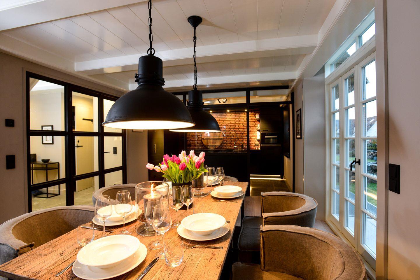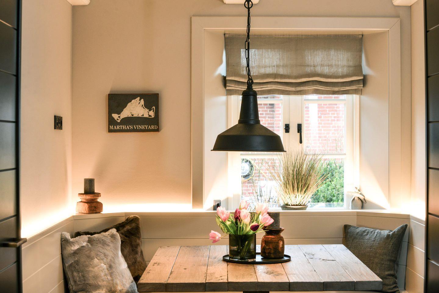 Diese außergewöhnliche Friesenhälfte unter Reet wurde im Jahr 2018 fertiggestellt und verspricht auf etwa 200 qm einen erlesenen und einzigartigen Luxus! Die hochwertige Ausstattung erstreckt sich von edlen Natursteinböden über Eichenvollholzdielen bis zu Parkett-Balkendecken und beinhaltet drei exklusive Natursteinbäder. Die moderne schwarze Designer-Einbauküche mit integriertem Weinkühlschrank bildet das Herzstück, während Sie Ihre Mahlzeiten in der urgemütlichen Essecke genießen. Die Küche ist durch eine exklusive Schmiedestahlkonstruktion vom Wohnbereich getrennt. Das behagliche Wohnzimmer lädt besonders an kühleren Tagen zum Verweilen vor dem offenen Kamin ein.