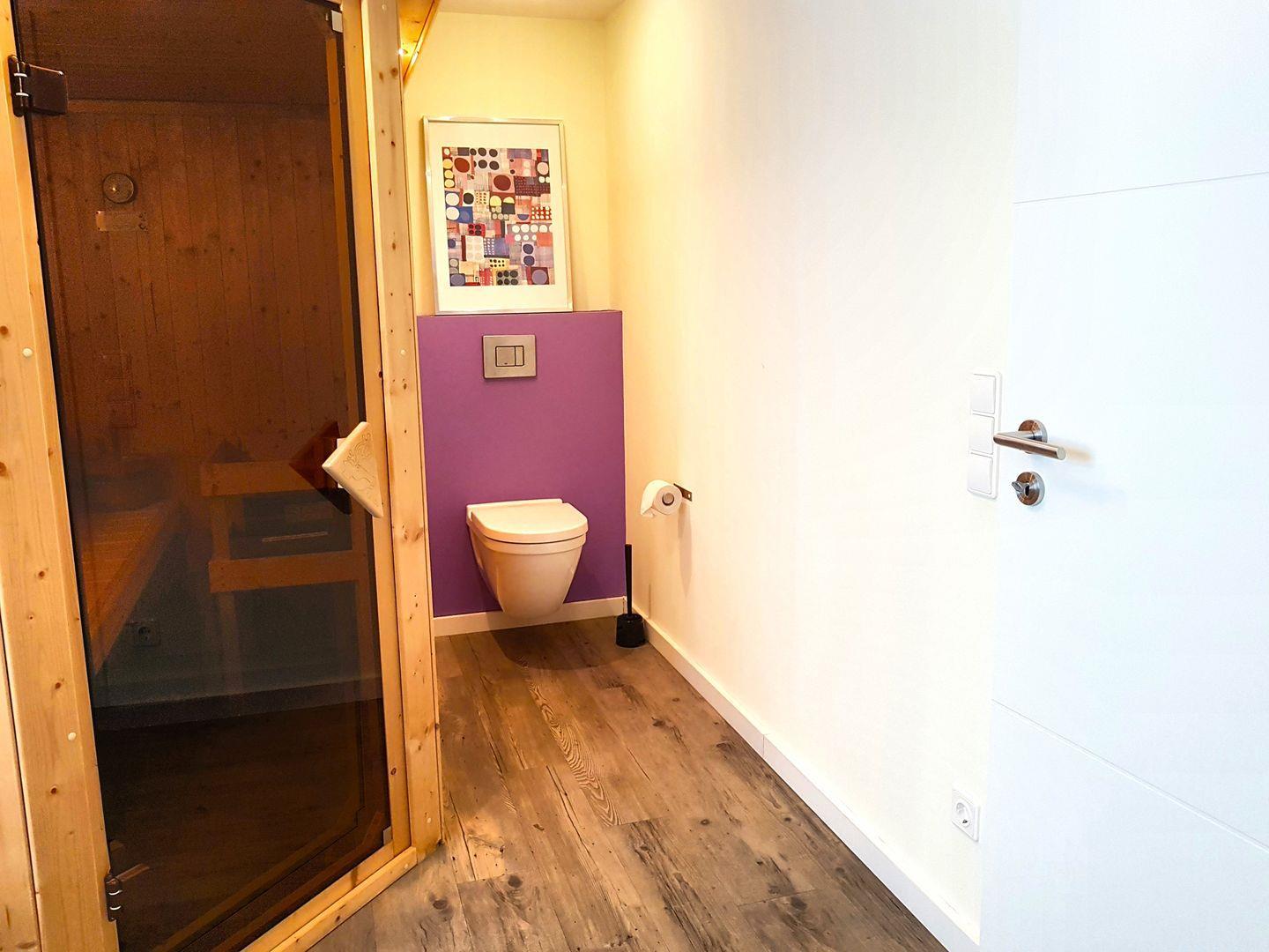 Im Untergeschoss befindet sich ein weiterer Wohn-/Essbereich mit einer zusätzlichen Küchenzeile, ein weiteres Doppelschlafzimmer und ein Duschbad mit Sauna, das perfekt zum Abschalten geeignet ist.