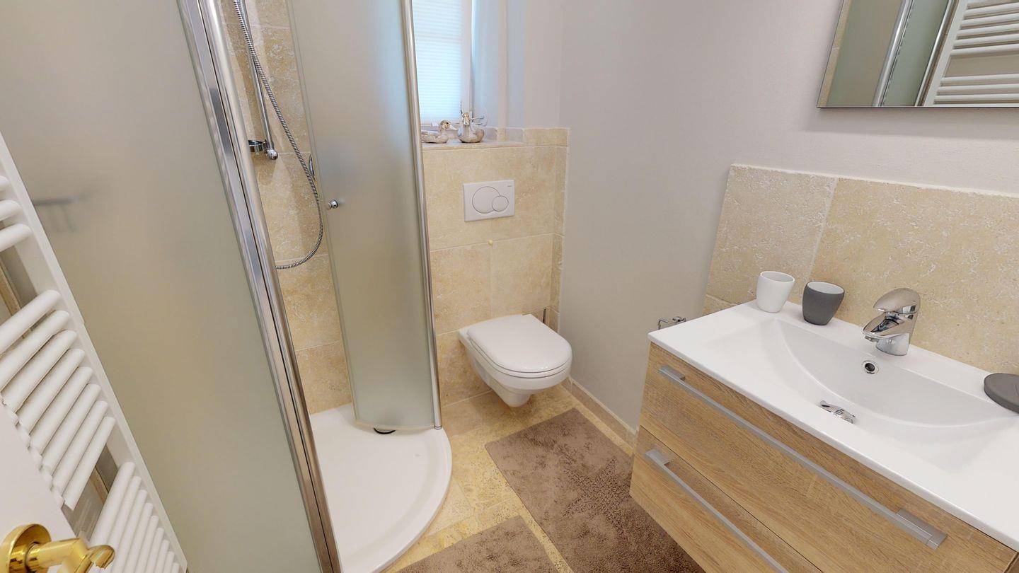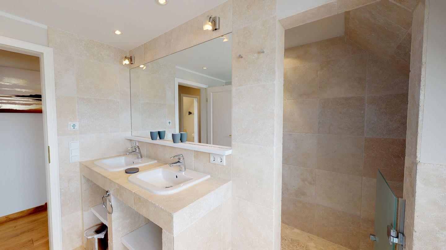 Die High-End-Küche im Erdgeschoss verfügt über eine Spülmaschine, eine amerikanische Kühl-Gefrierkombination, ein Induktionskochfeld, einen Backofen mit Mikrowelle und eine Dunstabzugshaube, die direkt in den Herd integriert ist. Im Erdgeschoss befindet sich auch ein Gäste-WC. Das Obergeschoss verfügt über drei Schlafräume mit Boxspringbetten sowie ein Badezimmer mit Dusche und WC und ein Badezimmer mit Wanne und WC. Im Dachgeschoss finden Sie einen weiteren Schlafraum mit zwei Einzelbetten.