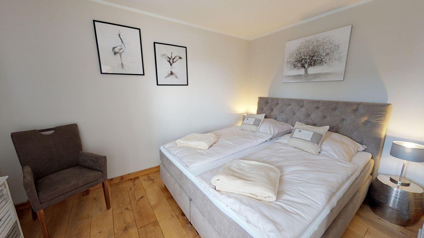 Willkommen in diesem luxuriösen Ferienhaus, das 2019 vollständig renoviert wurde und ein unvergessliches Urlaubserlebnis verspricht. Im Erdgeschoss erwartet Sie eine gemütliche Sitzgarnitur vor dem TV, ein großzügiger Esstisch mit Stühlen für gesellige Runden von 8 bis 10 Personen sowie ein moderner Kamin für behagliche Wärme in der kalten Jahreszeit. Zusätzlich bietet das Erdgeschoss zwei geräumige Schlafzimmer mit komfortablen Boxspringbetten.