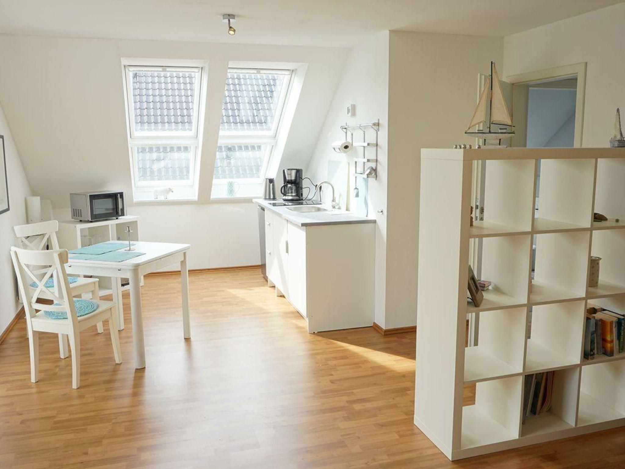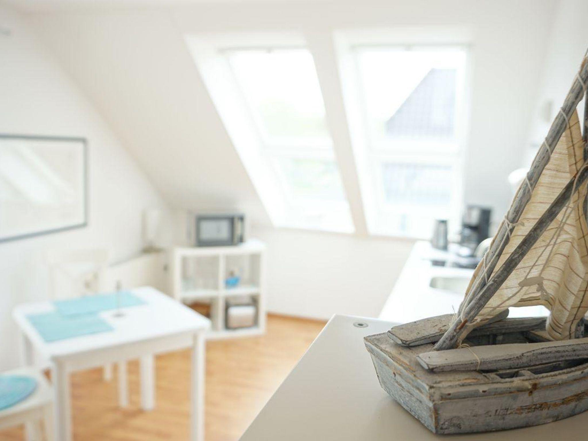 Entdecken Sie unsere 40 m² große Ferienwohnung im Obergeschoss, perfekt für Paare, die einen entspannenden Urlaub an der Nordsee suchen.