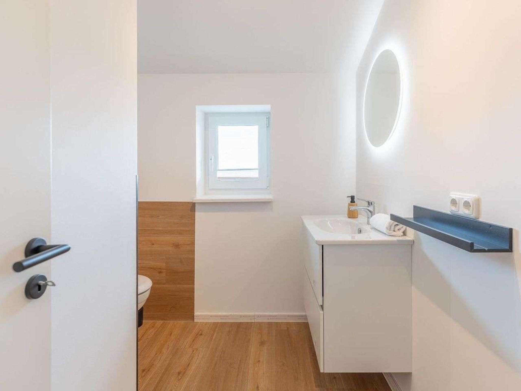 Ein modernes Badezimmer mit bodengleicher Dusche, WC sowie Sauna und einem Whirlpool sorgen für besonderen Komfort. Ein echtes Highlight ist der angrenzende Balkon mit wunderbarer Aussicht über das Katinger Watt!