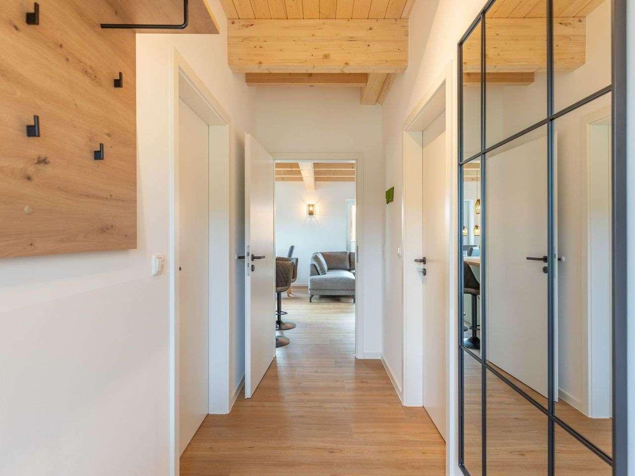 WLAN und ein PKW-Stellplatz stehen Ihnen kostenfrei zur Verfügung! In unserem Nichtraucher-Haus sind bis zu drei Vierbeiner herzlich willkommen. Das komplett eingezäunte Grundstück ermöglicht Ihnen und Ihrer Fellnase den nötigen Freiraum. Eine nachhaltig betriebene Fußbodenheizung sorgt ganzjährig für wohlige Wärme. Familien mit kleinen Kindern können Babybetten, Hochstühle und Kindertoilettensitz bei Bedarf vorbestellen. Ab Frühjahr 2026 stehen Ihnen in einem Gemeinschaftsraum eine Waschmaschine und ein Trockner zur Verfügung.
