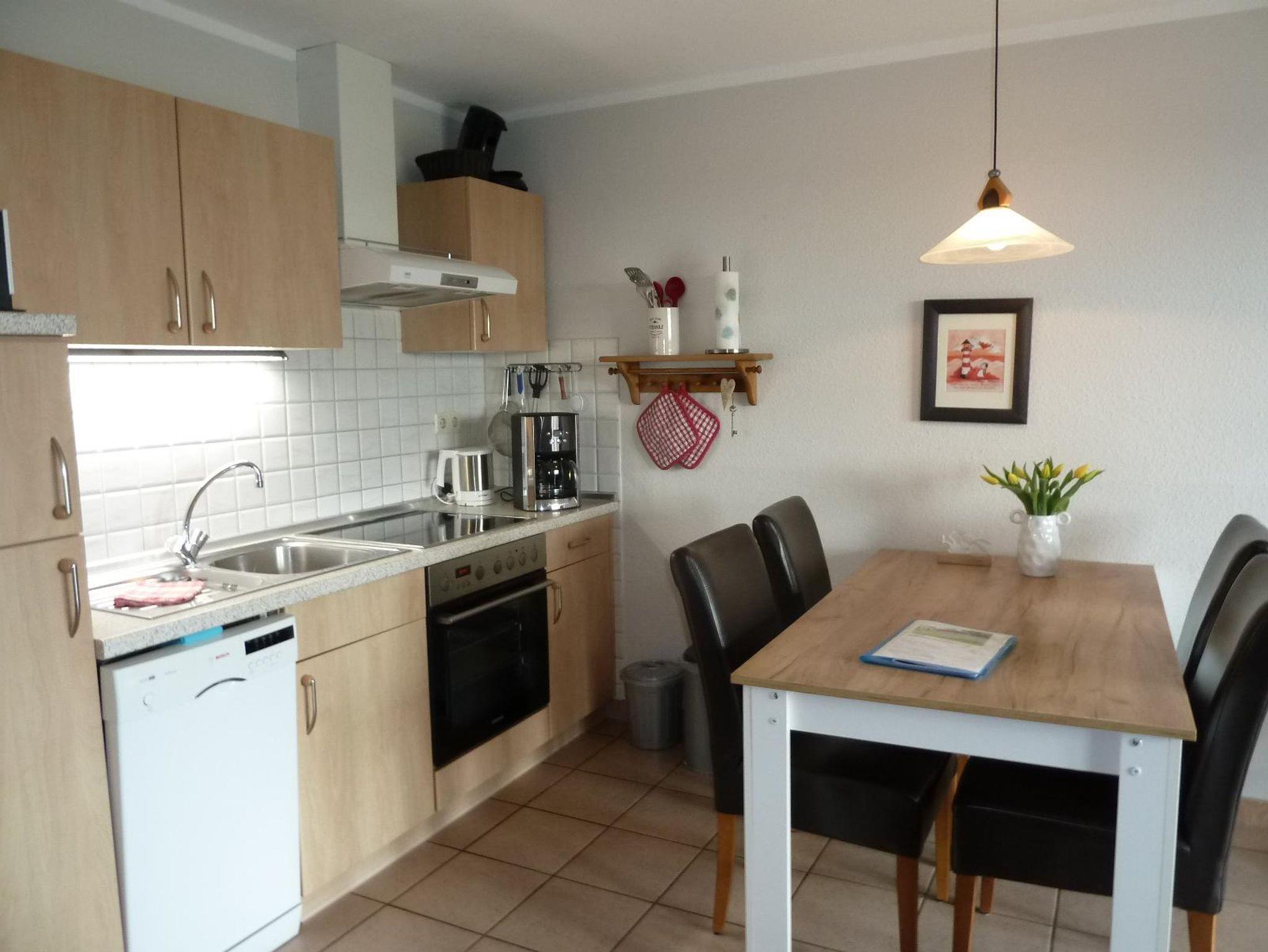 In der komplett ausgestatteten Küche lassen siich leckere Gerichte zaubern. Die Küche ist zum Wohnraum offen.