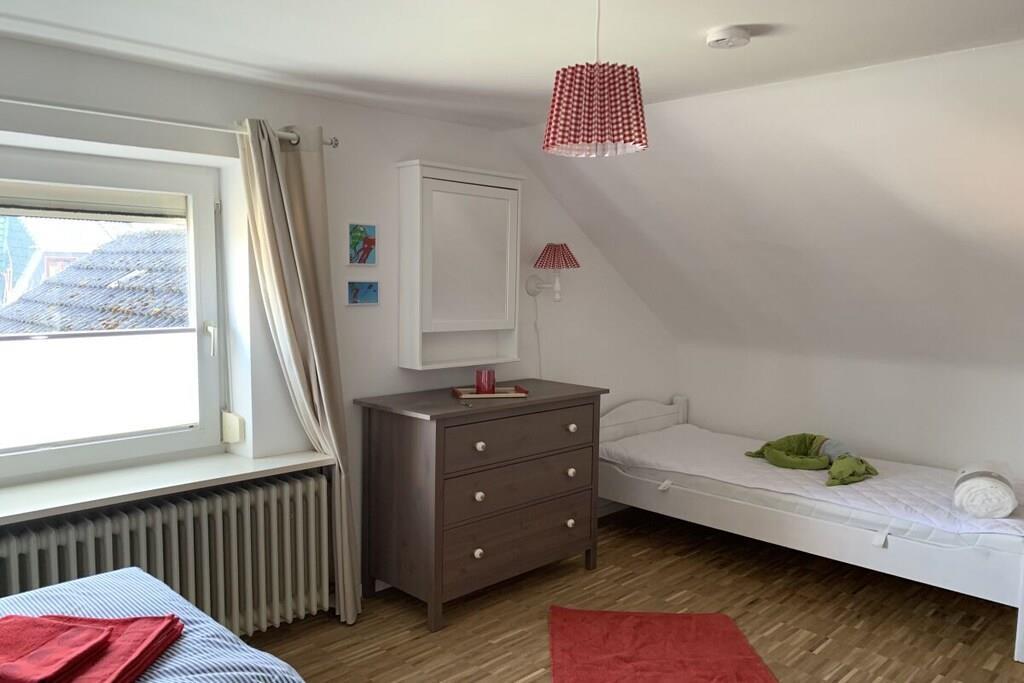 1-4 Personen könne bequem in den 48 qm im 1. Obergeschoß ihren Urlaub nahe der Nordsee genießen. Sie haben hier einen eigenen Eingang mit einer Holztreppe nach oben. Schlafzimmer mit großen Doppelbett ( 1,80 m x 2.00 m), Bitte daran denken ein großes Bettlaken mitzubringen .1 extra Bett ( 1m x 2,00 m) Im Wohnzimmer steht eine Schlafcouch (1,40m x 2,00 m). Der Wohnbereich lädt durch eine offene Wohnküche mit gemütlicher Essecke ein.( Geschirrspüler, Toaster, Kaffeemaschiene, Mikrowelle) . Wohnzimmer mit Couch / Schlafcouch und Sessel und einem Fernseher . Im Badezimmer befindet sich eine Badewanne . Im Garten gibt es eine Sitzecke für Sie . Gerne dürfen Sie ihren eigenen Grill mitbringen