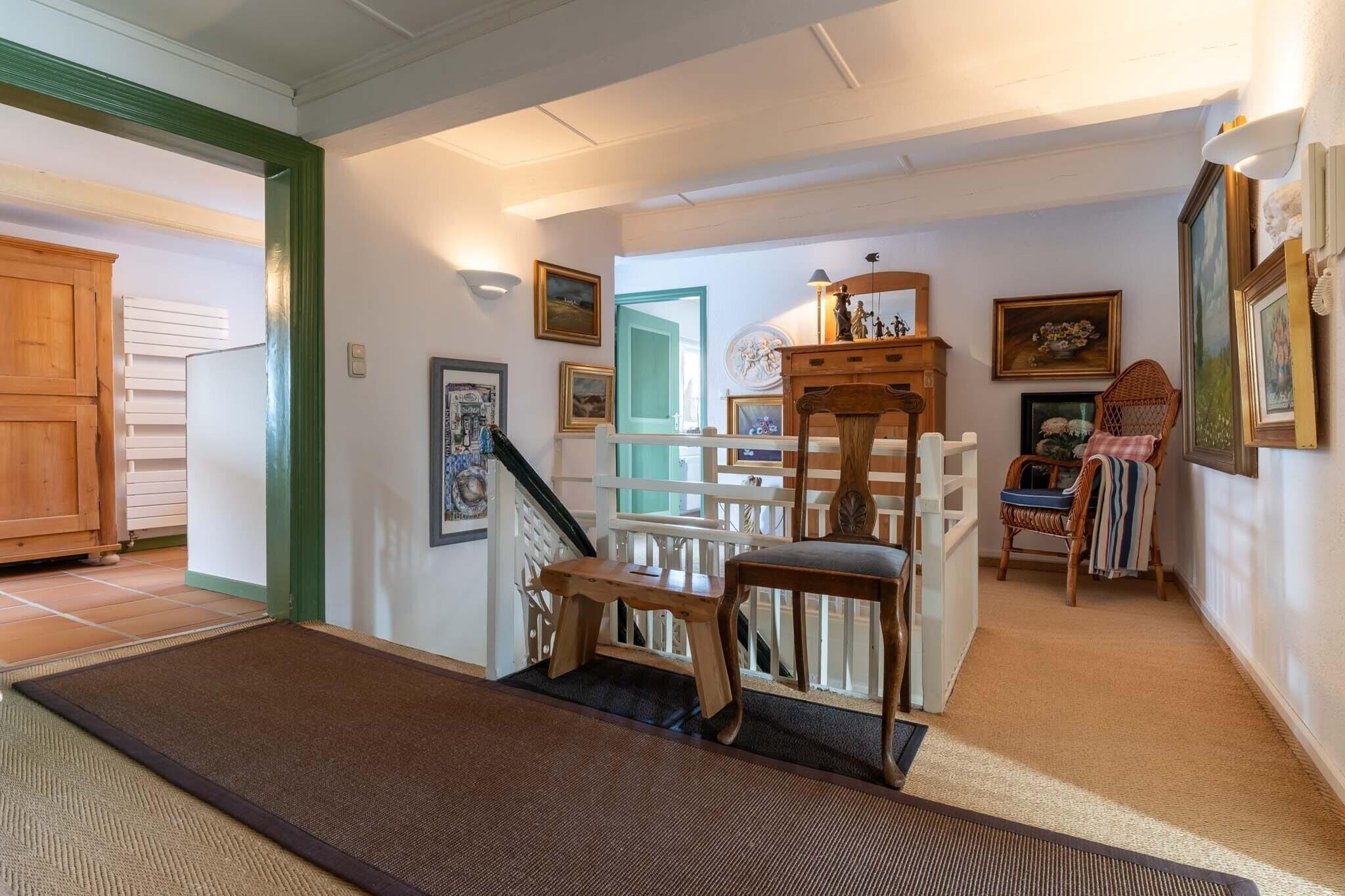 In der 1. Etage: (offene Küche(Kochplatte(2 Kochplatten, Ceranfeld), Wasserkocher, Toaster, Kaffeemaschine, Backofen, Spülmaschine, Kühlschrank, Tiefkühlschrank), Wohn/Esszimmer(TV(Flatscreen, digital), Esstisch, Kaminofen, Sitzecke, Radio), Schlafzimmer(Doppelbett), Badezimmer(Badewanne, Dusche, Waschbecken, Toilette)) In der 2. Etage: (Schlafzimmer(Doppelbett, TV(Flatscreen, digital), Sitzecke)) Heizung, Terrasse, Gartenmöbel, Liegen, Parkplatz, Sonnenschirm, Kinderbett (kostenpflichtig), Handtücher/Bettwäsche (inklusive)