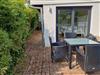 Die Morgensonne lädt zum Frühstücken auf der kleinen Terrasse hinter dem Haus ein. Die Ruhe kann man dort den ganzen Tag genießen.