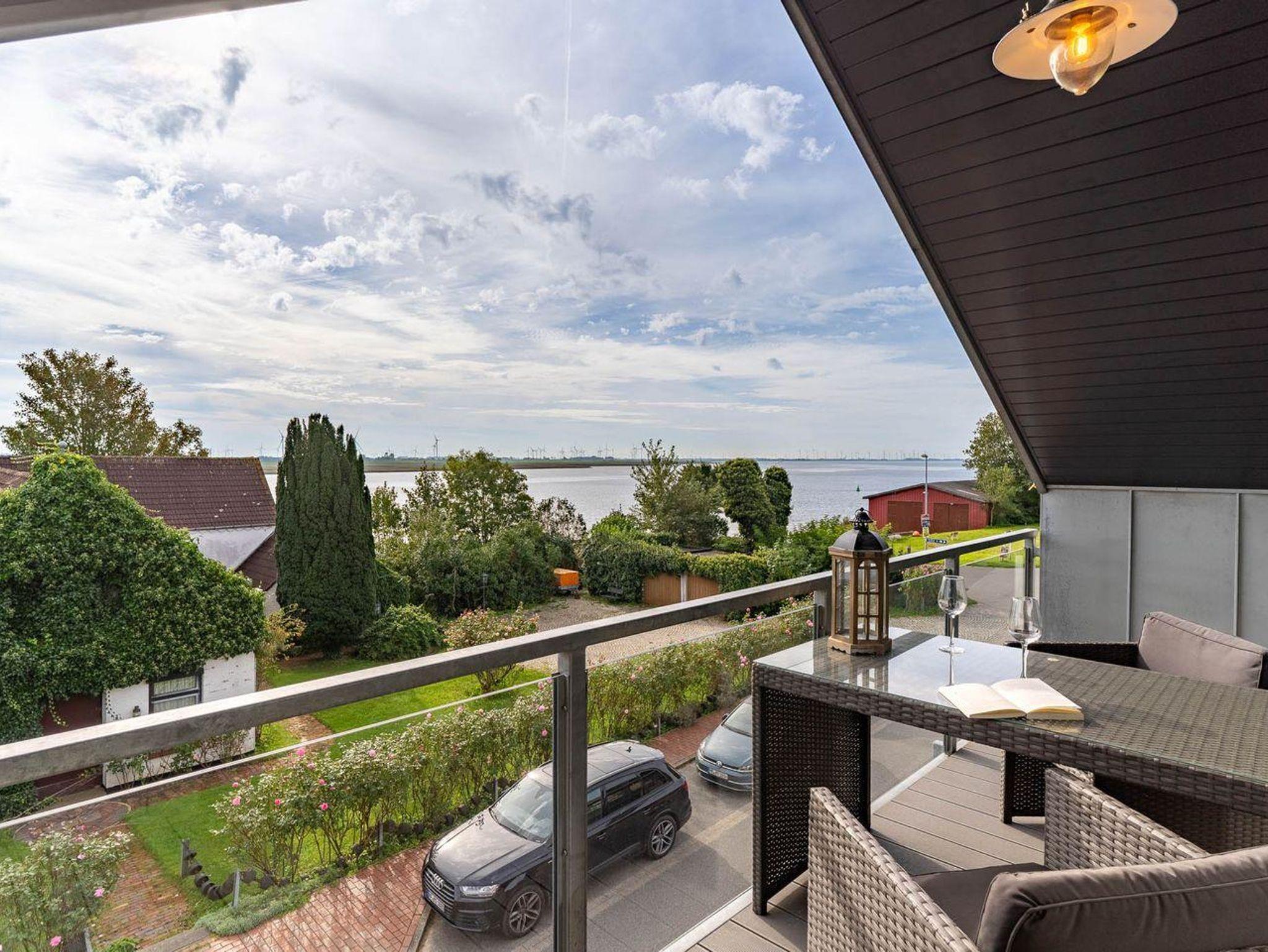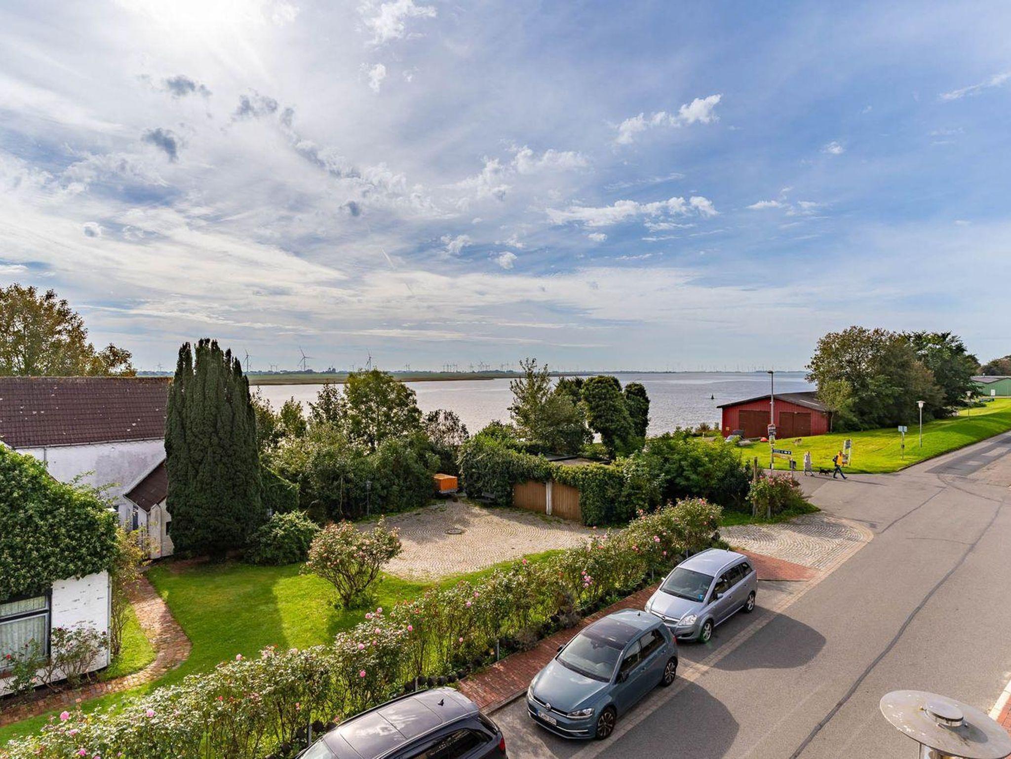 Die Terrasse, ausgestattet mit komfortablen Sitzmöbeln und einem großzügigen Gasgrill, ermöglicht entspannte Stunden im Freien. Der Blick auf den Hafen wird zu einem ständigen Begleiter, sei es von der Terrasse aus oder vom Balkon und der Loggia im Obergeschoss. Hier können Sie den vorbeiziehenden Schiffsverkehr beobachten und die maritime Atmosphäre in vollen Zügen genießen.