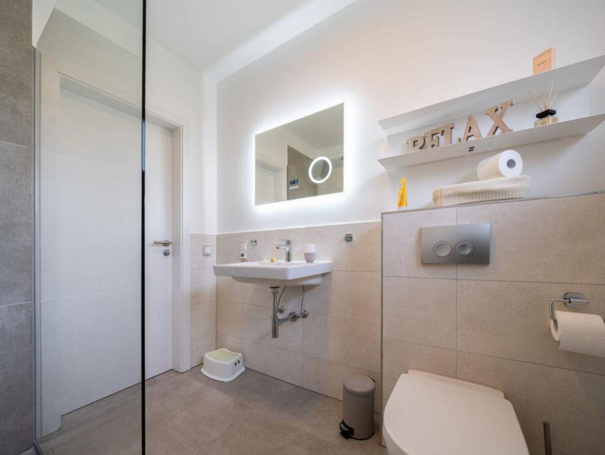 Das barrierearme Bad mit Regendusche und Fußbodenheizung rundet unser Haus ab.