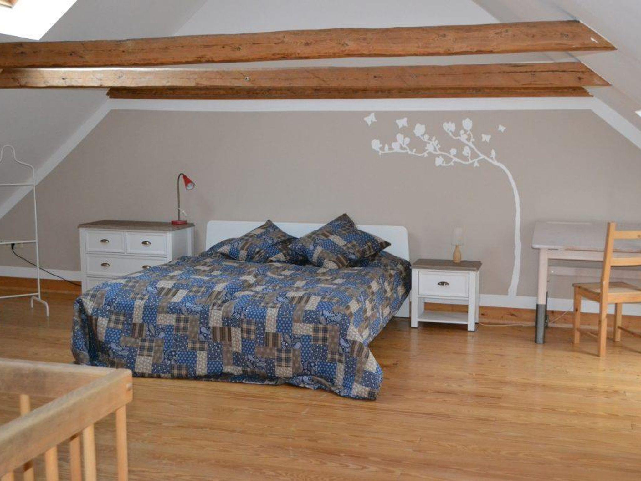 In der 2. Etage liegt der offene und großzügige Schlafbereich mit einem Doppelbett (180 cm).