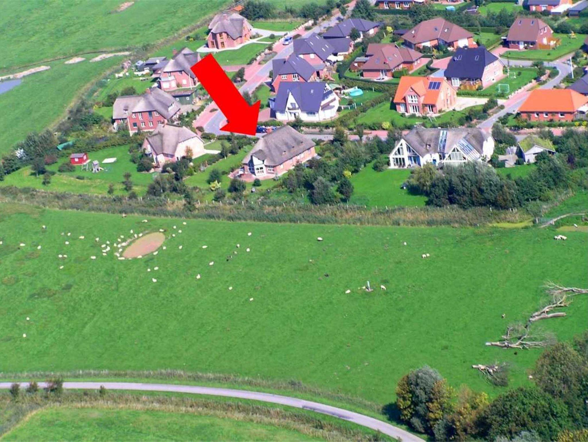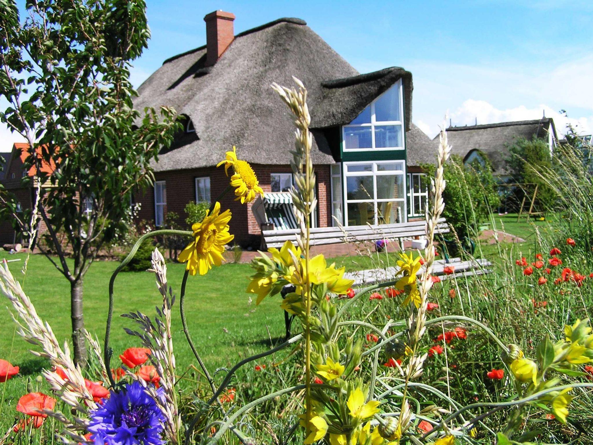 Moderne Ferienwohnung in ruhiger Ortsrandlage von Tönning mit Reetdach und freier Landschaftssicht.