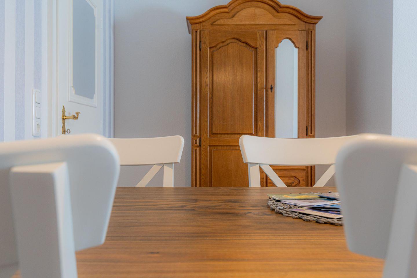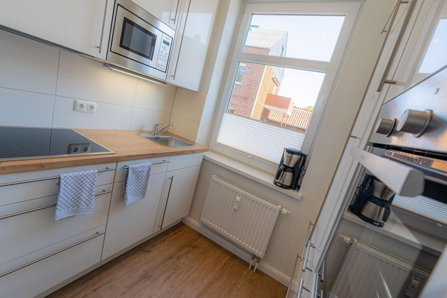 Die modern eingerichtete Ferienwohnung liegt in der Hochparterre eines alten Tönninger Stadthauses und bietet eine geräumige Balkonterrasse.