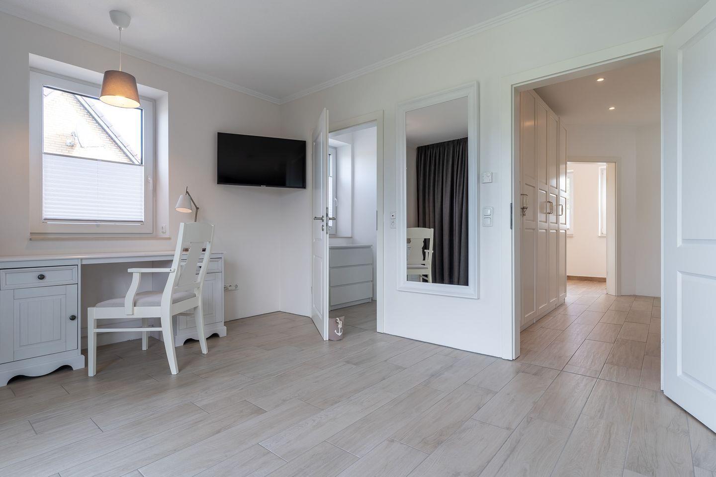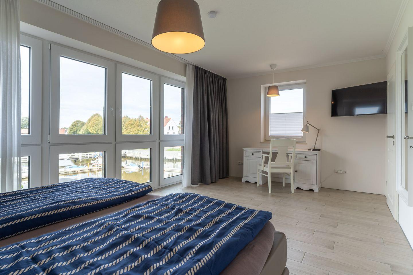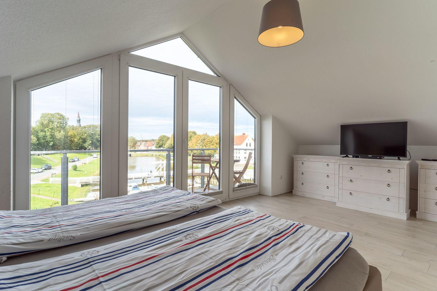 Die herausragenden Merkmale des Ferienhauses Poller 25 werden durch die atemberaubenden Ausblicke von der Terrasse, dem Balkon und der Loggia unterstrichen. Die Lage direkt am Hafen, auf dem historischen Gelände einer alten Werft, verknüpft gekonnt die maritime Geschichte mit modernem Komfort. Sollten Sie mit einer größeren Gruppe anreisen, besteht die Möglichkeit, das benachbarte Ferienhaus Poller 23 hinzuzubuchen. Beide Häuser erstrecken sich über drei Etagen und bieten großzügigen Raum. Die Schlafzimmer, ausgestattet mit komfortablen Boxspringbetten, verleihen Ihrem Aufenthalt eine extra Portion Luxus, und ein Schlafzimmer verfügt sogar über einen begehbaren Kleiderschrank.