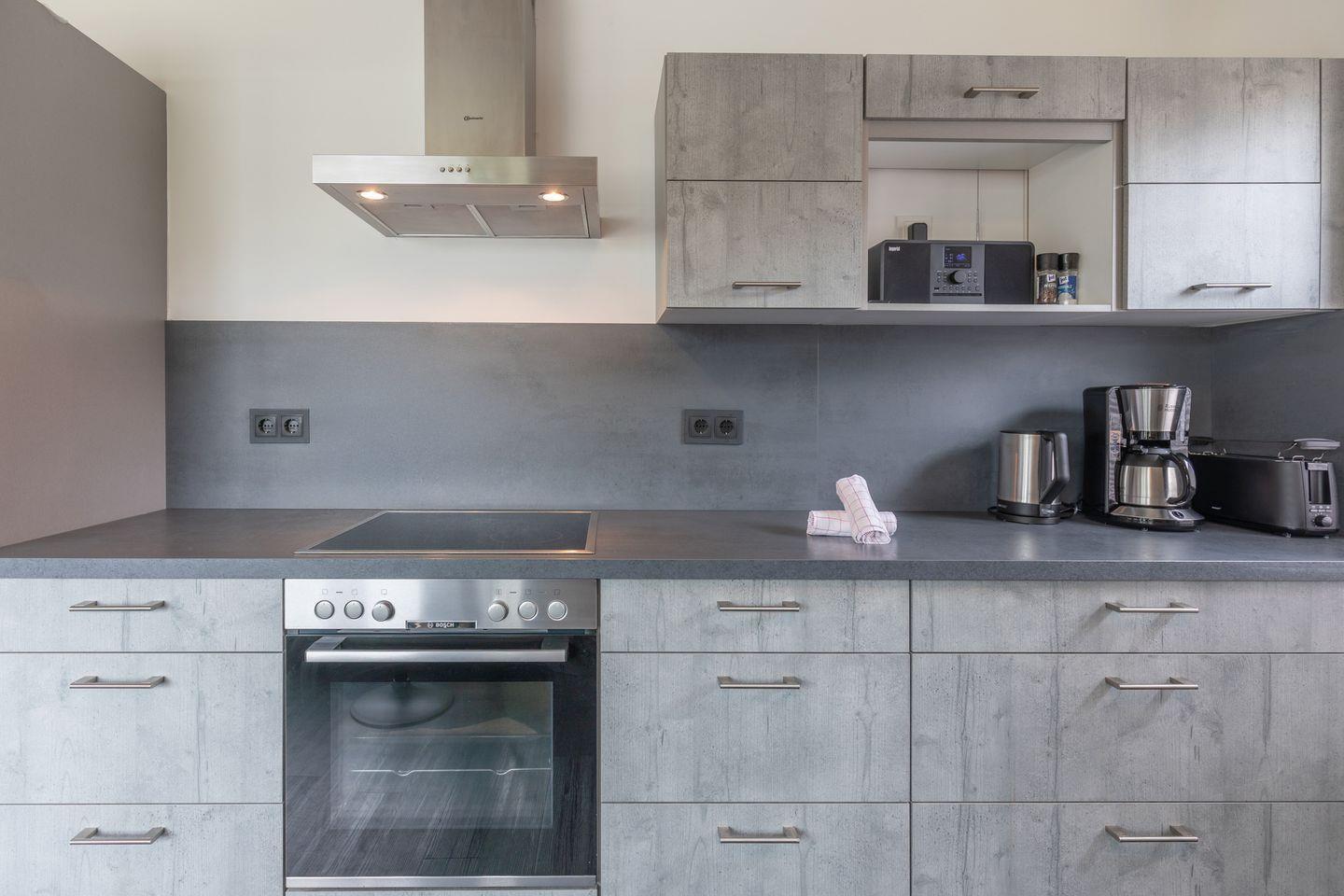 Die voll ausgestattete, separate Küche verfügt über moderne Geräte wie Backofen, Kühlschrank mit Gefrierfach, Geschirrspüler, Kaffeemaschine und Wasserkocher. Auch an Geschirr und Kochutensilien ist alles vorhanden. Ein direkter Zugang zur Terrasse ermöglicht Ihnen, die Mahlzeiten bei schönem Wetter auch draußen mit Blick auf den Tönninger Hafen zu genießen.