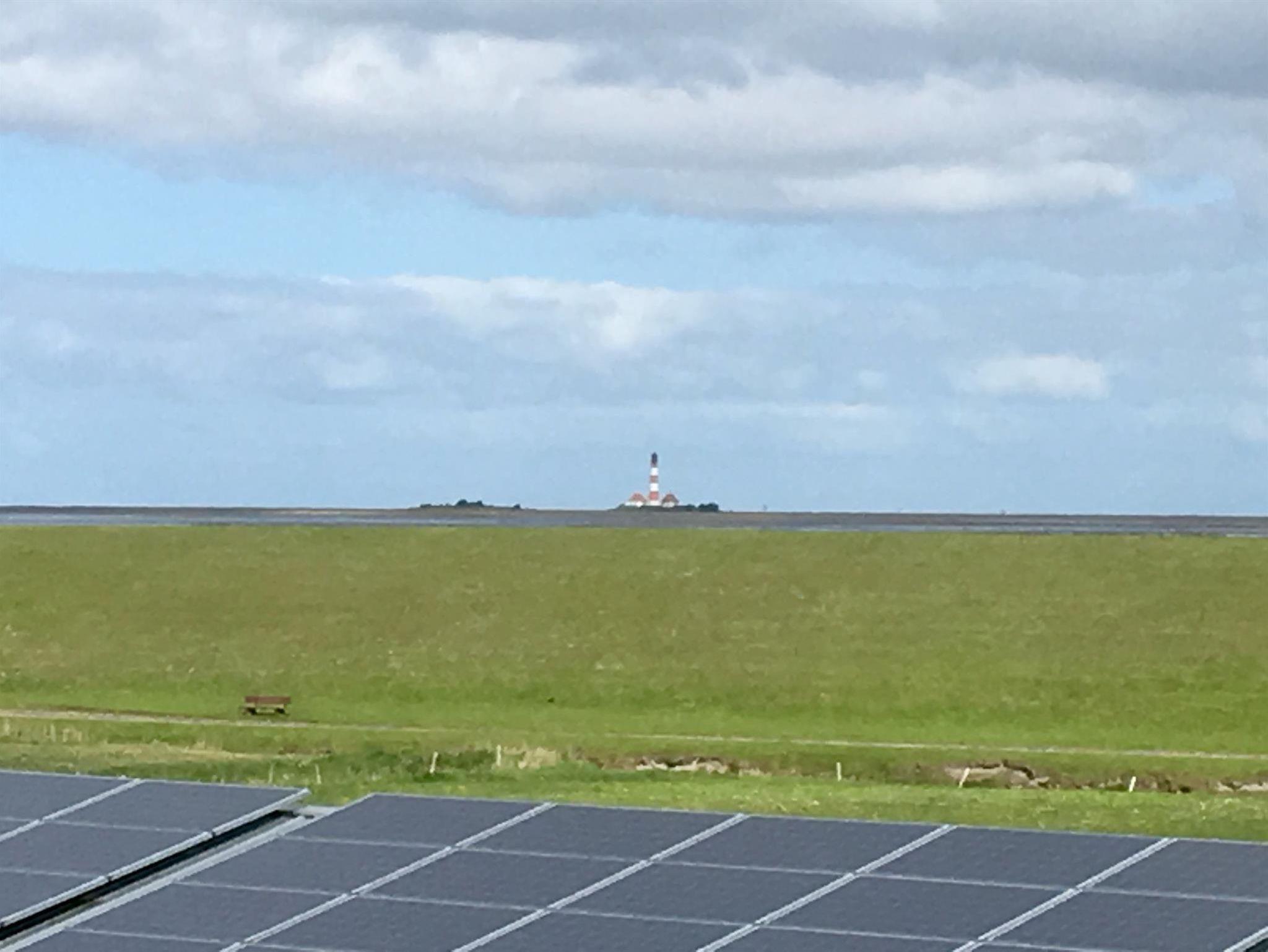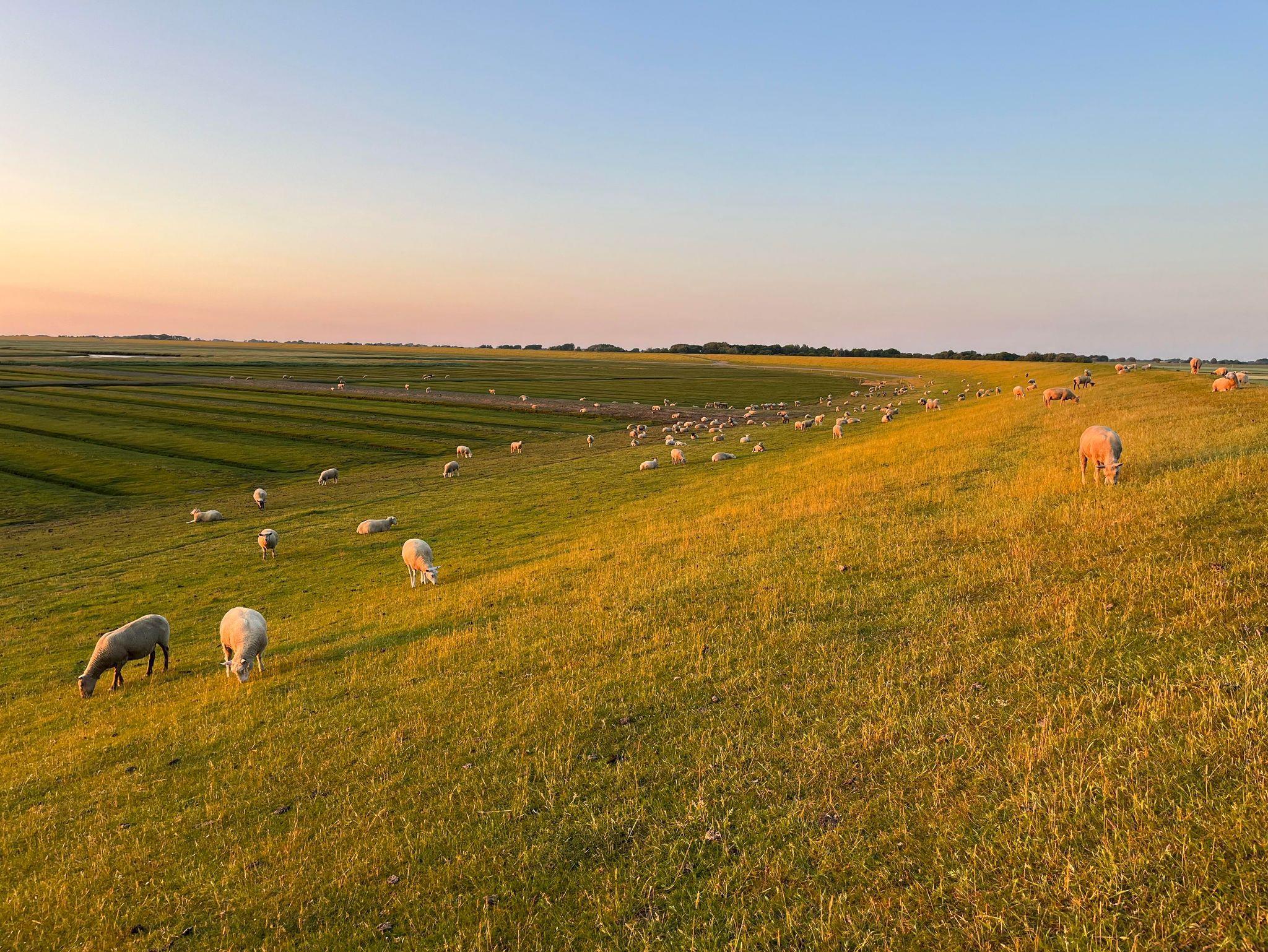 Gemütliche Ferienwohnung am Deich im Tümlauer Koog mit Blick auf den Westerhever Leuchtturm und familienfreundlicher Umgebung.