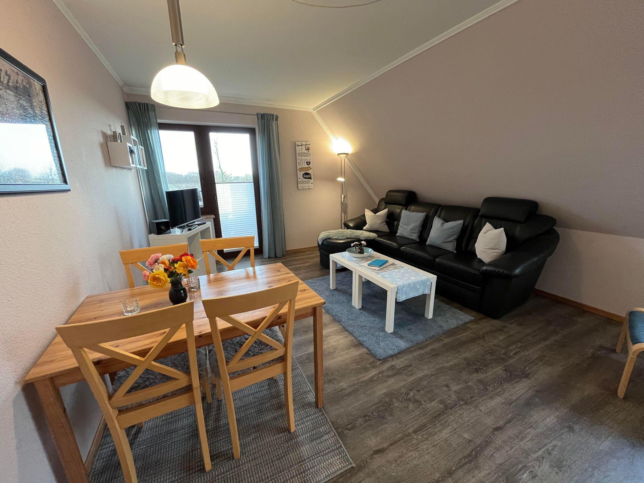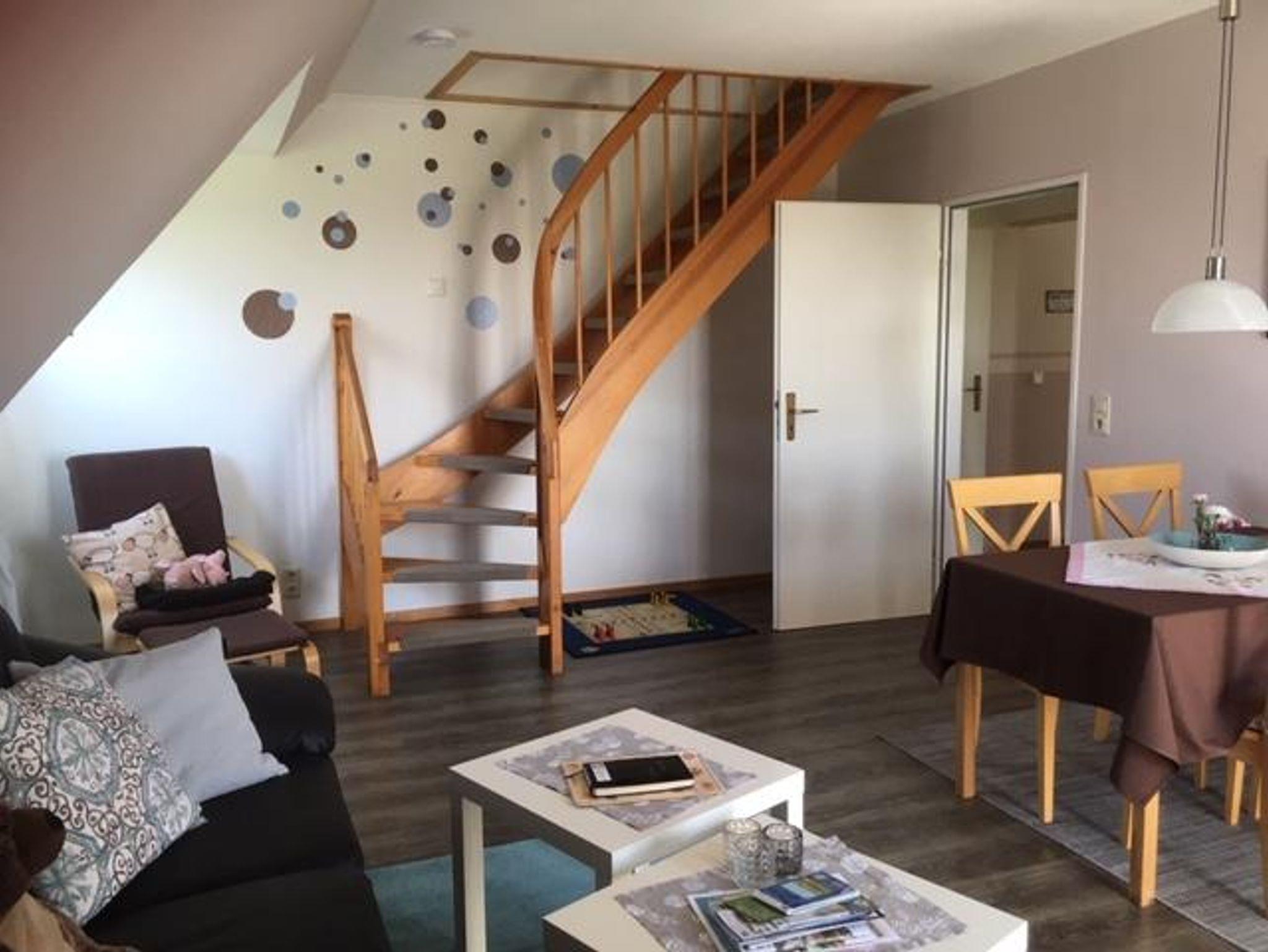 Ferienwohnung Südermarsch für bis zu 4 Personen im Obergeschoss Die Wohnung verfügt über zwei Schlafräume, ein Schlafraum für 2 Personen mit zwei Einzelbetten, Bettdecken 140 x 200 cm (Kinderzimmer) befindet sich im Obergeschoss, ein Schlafraum für 2 Personen mit Doppelbett, Bettdecken in Übergröße 155 x 220 cm (Eltern) befindet sich im Dachgeschoss. Bad mit Dusche und WC, die Küche ist vom Wohnraum abgetrennt und ist komplett mit einer Geschirrspülmaschine, Cerankochfeld, Backofen, Mixer, Toaster, Kaffeemaschine, Wasserkocher, Eierkocher, Kühl-/Gefrierschrank ausgestattet. Alle Betten sind 90 x 200 cm groß. Fernseher, kleine Musikanlage. Zusätzlich hat die Wohnung einen kleinen Balkon in Richtung Süden. Handtücher und Geschirrtücher bitte mitbringen. Keine Kurtaxe im Tümlauer-Koog.
