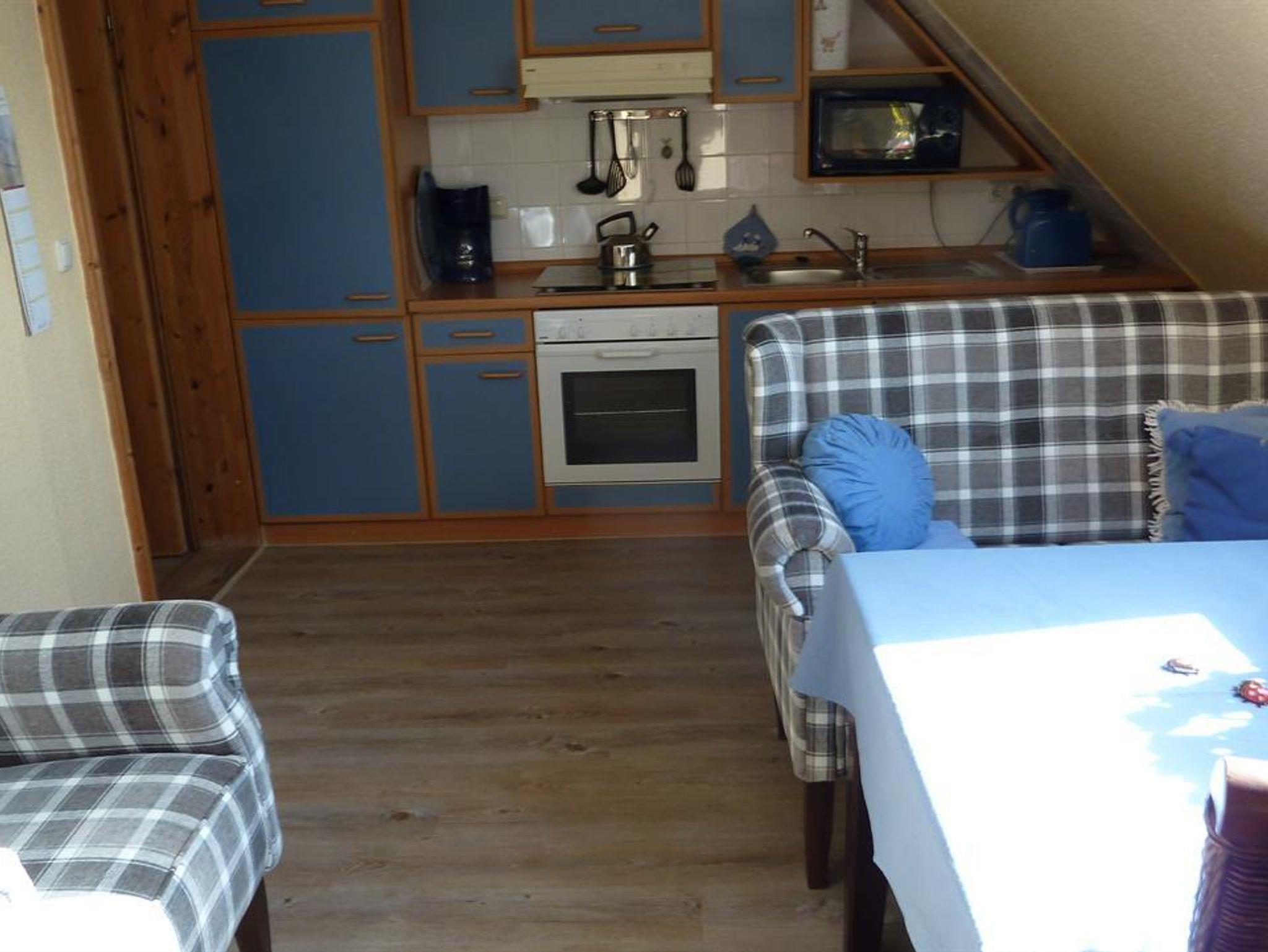 Die behagliche Ferienwohnung hat einen Wohn-/Essraum mit komplett ausgestatteter Küchenzeile, 1 Elternschlafzimmer mit Doppelbett und angrenzendem Badezimmer mit Dusche/WC. Von hier erreichen Sie das Kinderzimmer mit 2 Einzelbetten. Farb-TV und Stereoanlage vorhanden. Waschmaschine und Trockner für alle Gäste im Haus (gegen Gebühr).
