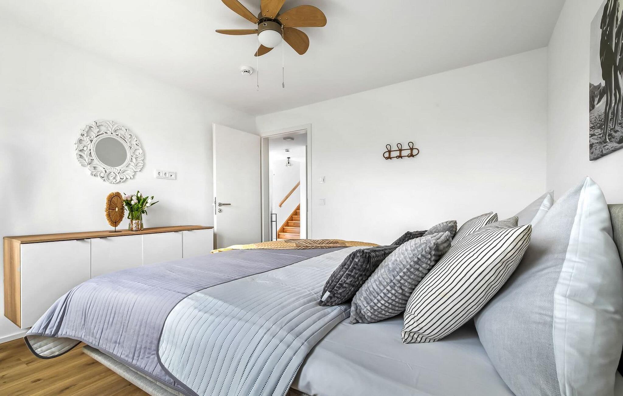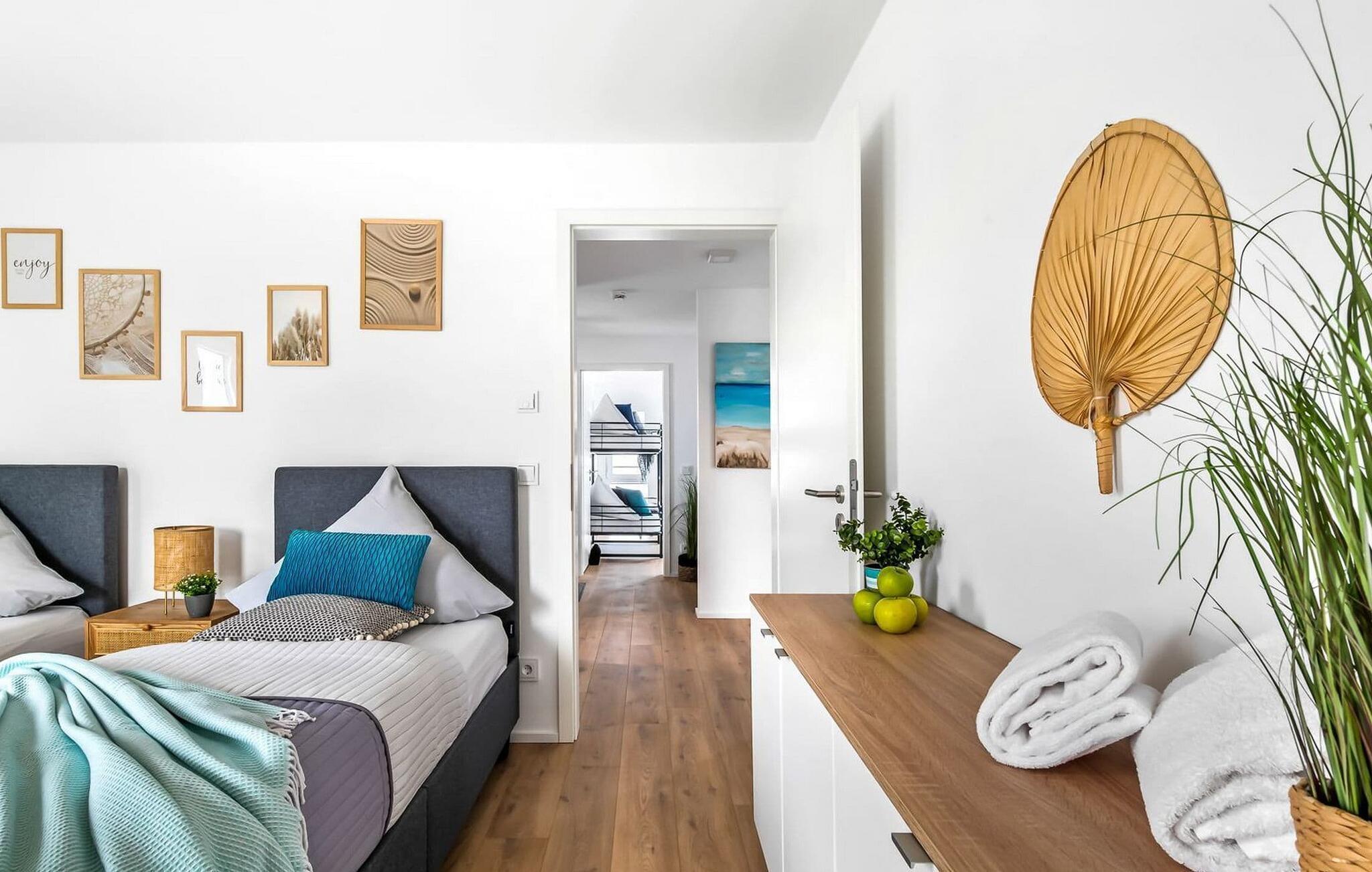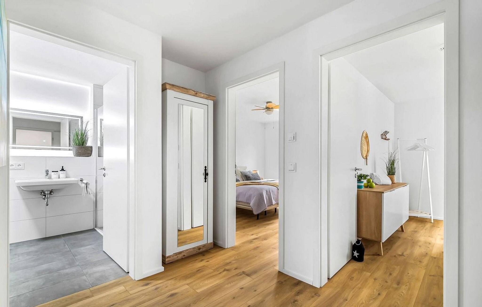 Beim Betreten der Ferienwohnung im ersten Obergeschoss, beginnt vom ersten Moment an die Entschleunigung. Es eröffnet sich der Ruhebereich der Wohnung. In dieser Etage befinden sich drei geräumige Schlafzimmer, egal für welches ihr euch entscheidet, erholsamer Schlaf ist euch sicher.