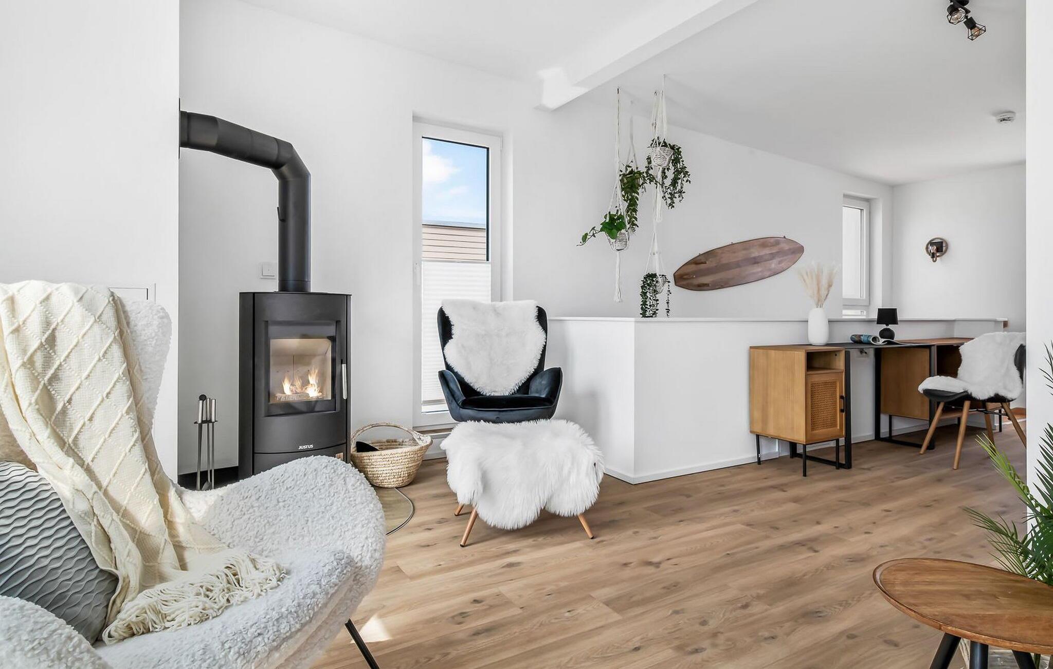 Bei nicht so sonnigem Wetter sorgen die gemütliche Wohnlandschaft und der knisternde Kamin für den wohligen Kuschelfaktor. Der Alltag entrückt immer mehr.
