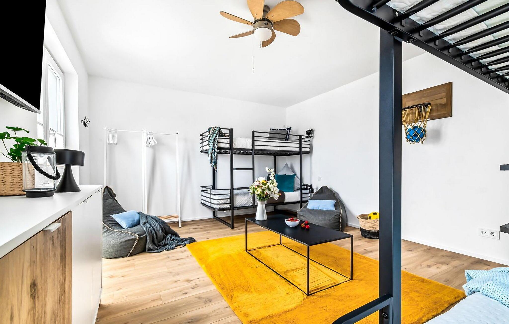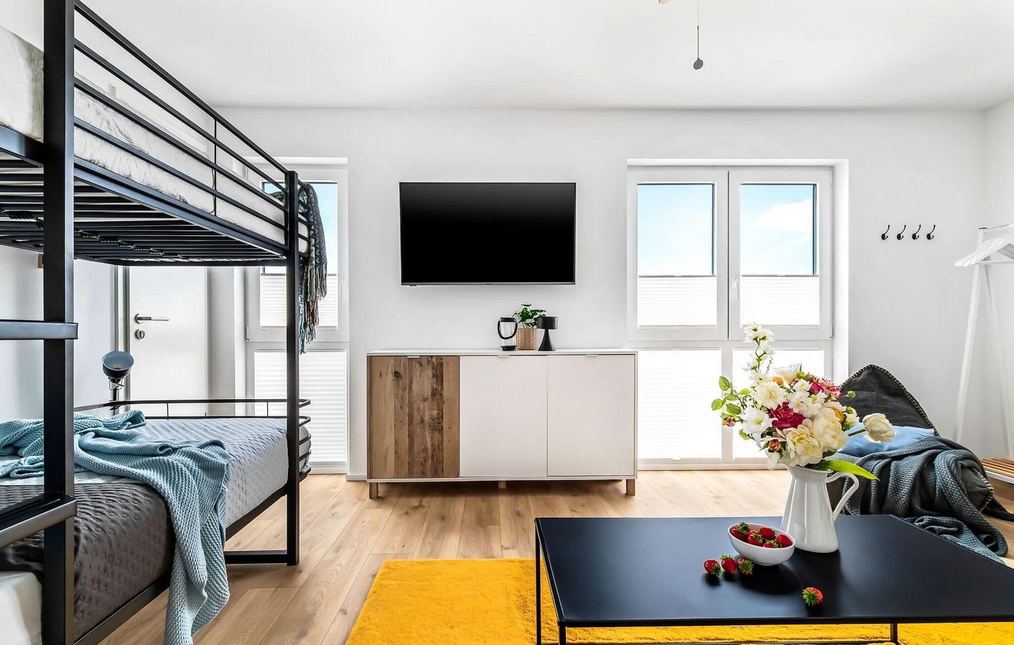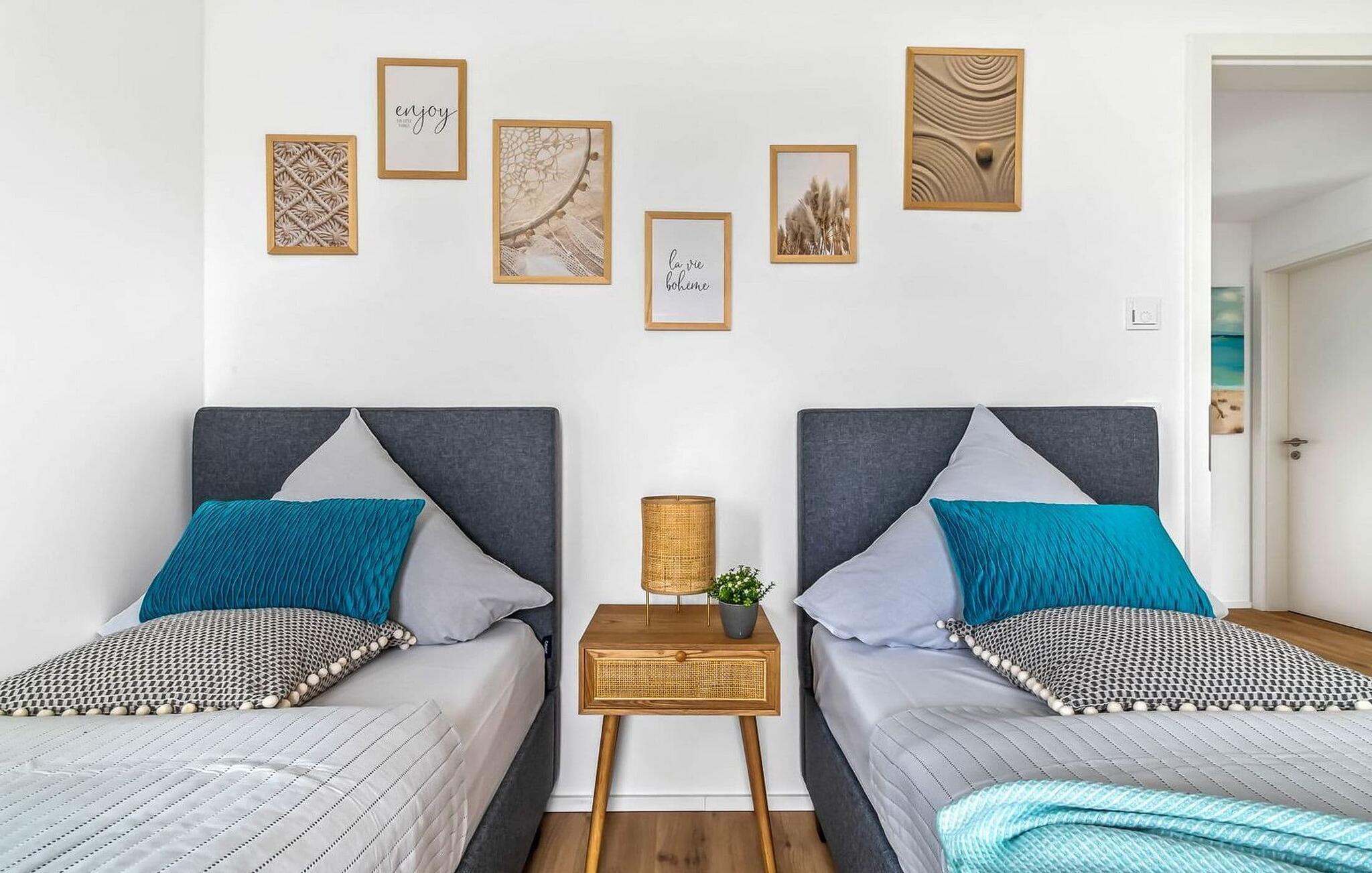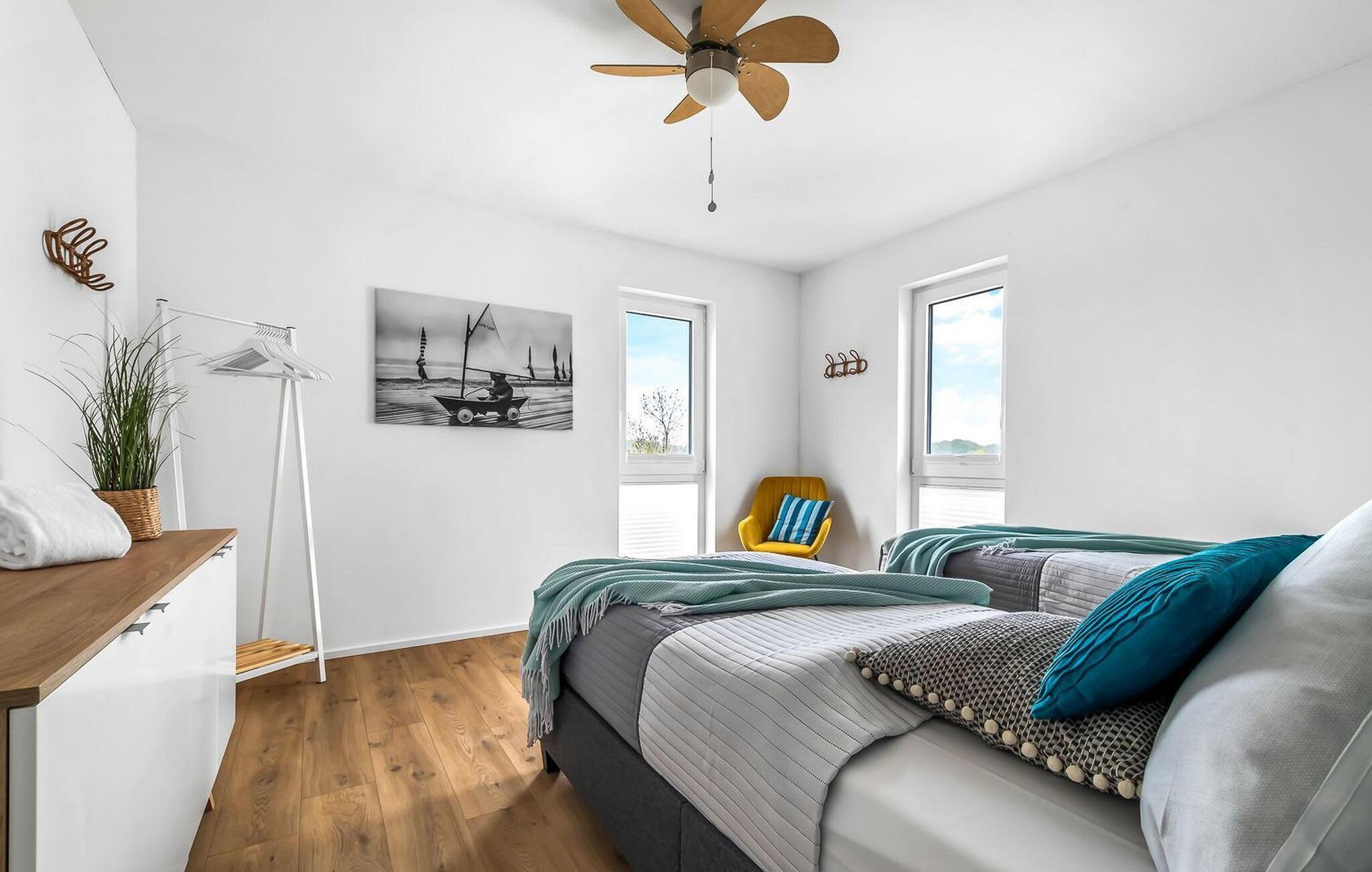 Ein Schlafzimmer ist mit einem hochwertigen Boxspring-Doppelbetten ausgestattet und das zweite Schlafzimmer bieten zwei separaten Einzelbetten. Im dritten Schlafzimmer erwartet euch Jugendlounge-Feeling mit eigenem Fernseher und Sitzsäcken. Hier habt ihr zwei Kajüten-Betten die sich auf vier Schlafplätze erweitern lassen.