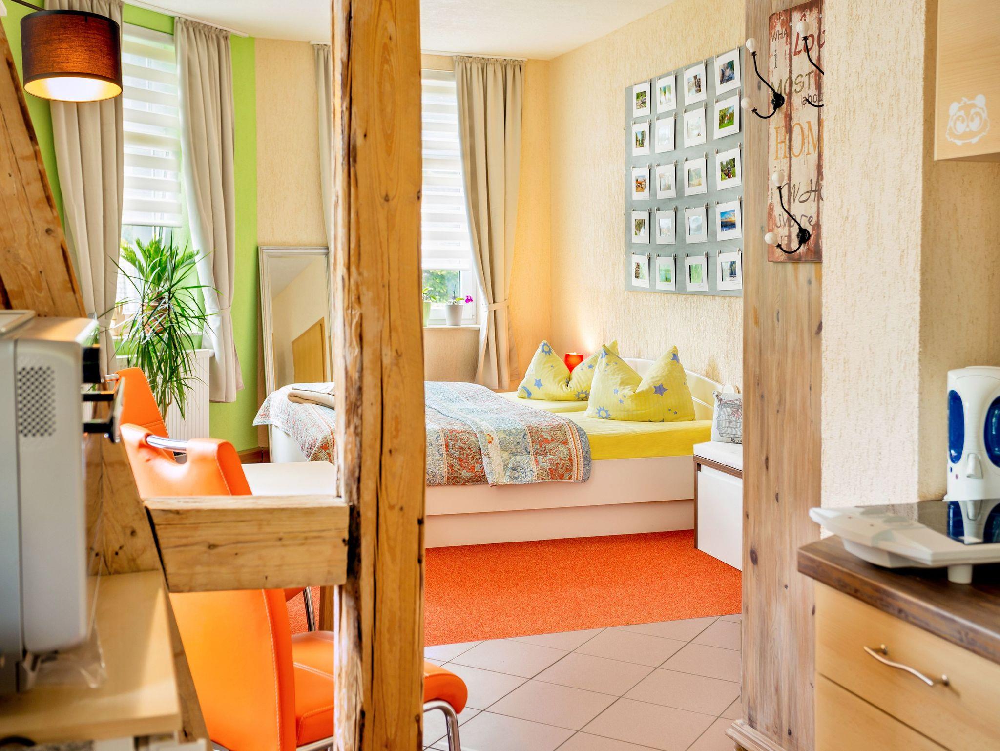 Die Ferienwohnung „Bodeblick“ ist ideal für Paare und bietet eine gemütliche Atmosphäre auf 40 m². Die helle und komfortable Einrichtung sorgt für Entspannung und Wohlbefinden.