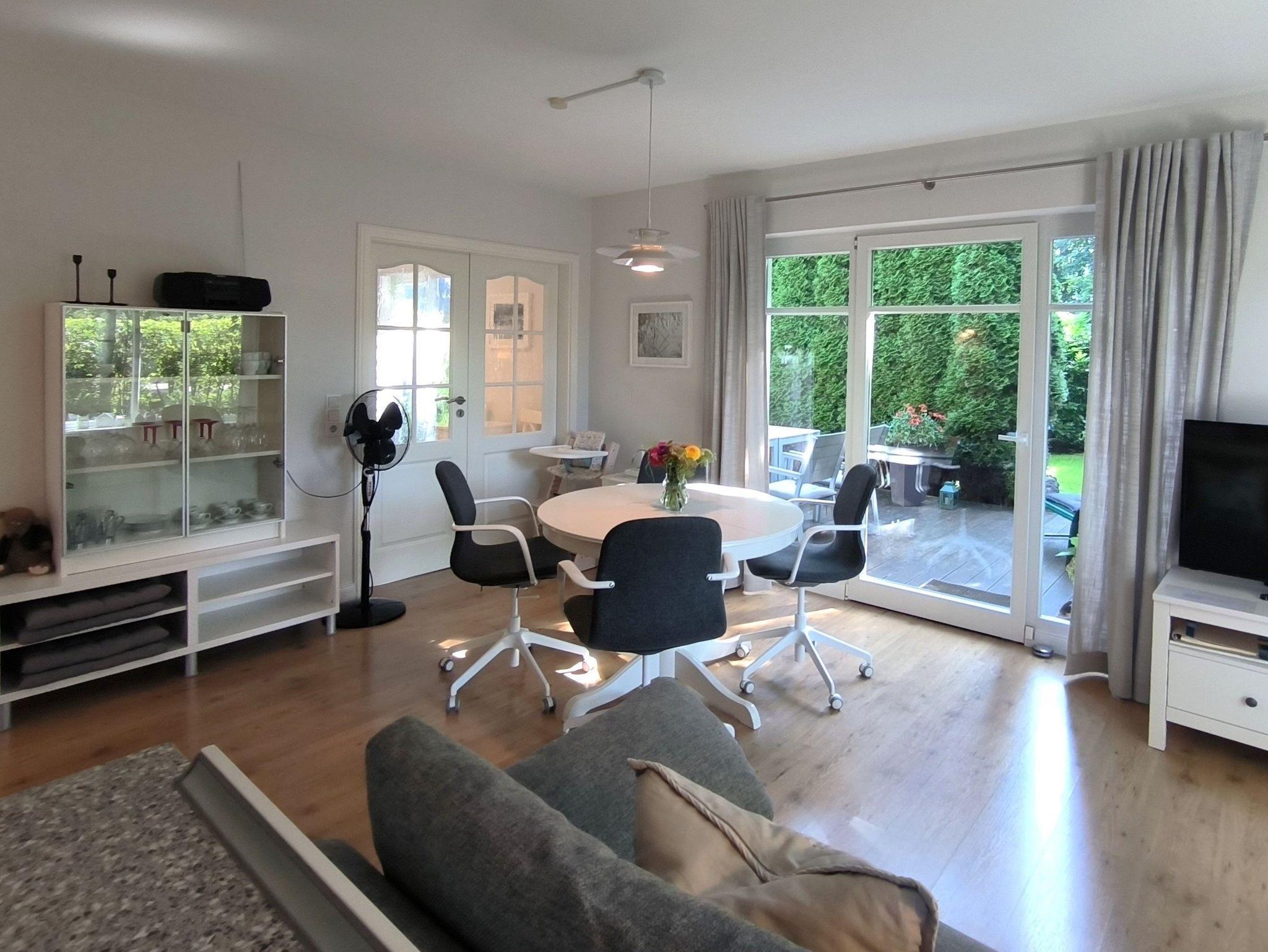 Die insgesamt 63 qm umfassen einen offenen Wohn-, Küchen- und Flurbereich, einen Wirtschaftsraum, eine Gästetoilette, ein Schlafzimmer mit Doppelbett 160 cm x 200 cm, ein Schlafzimmer mit ausziehbarem Einzelbett (je 80 cm x 200 cm) sowie ein Bad mit ebenerdiger Dusche und einer Toilette mit Haltegriffen. Eine große Terrasse mit Gartenmöbeln und Sonnenliege lädt zum Entspannen ein und der große Garten der Familie Seidenstücker darf mitgenutzt werden: hier erwarten Sie eine liebevoll angelegte Bepflanzung, ein Gartenteich und versteckte Gartendeko. Das Haus eignet sich auch gut für Familien mit Kindern: neben Reisebett und Hochstuhl finden die kleinen Gäste auch eine Spielecke und können sich im Sandkasten, auf dem Spielgerät oder dem großen Trampolin im Garten austoben.