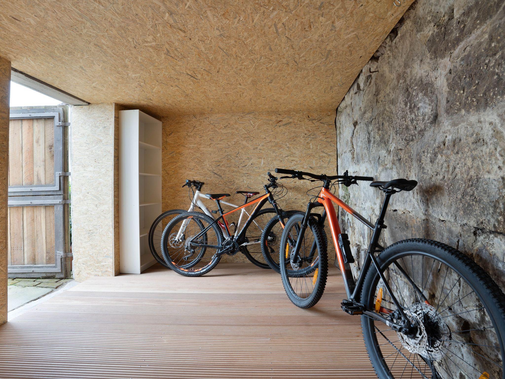 Ein weiteres Highlight ist der direkte Zugang von der Wohnküche zur Ostterrasse mit Gartenmöbeln. Hier können Sie bei schönem Wetter Ihren Morgenkaffee oder Ihr Frühstück mit einem tollen Weitblick genießen. Von hier aus haben Sie auch einen direkten Zugang zum Stellplatz 2 und zur Fahrradgarage. Hier können Sie Ihre mitgebrachten Fahrräder und E-Bikes wettergeschützt und diebstahlsicher unterbringen. Dort können Sie auch Ihre E-Bikes laden und nasse Outdoorbekleidung aufhängen. Ein Werkzeugkoffer, eine Luftpumpe und einige Fahrradpflegeprodukte stehen Ihnen ebenfalls zur Verfügung. Von hier aus gelangen Sie direkt und trocken in die Wohnung.
