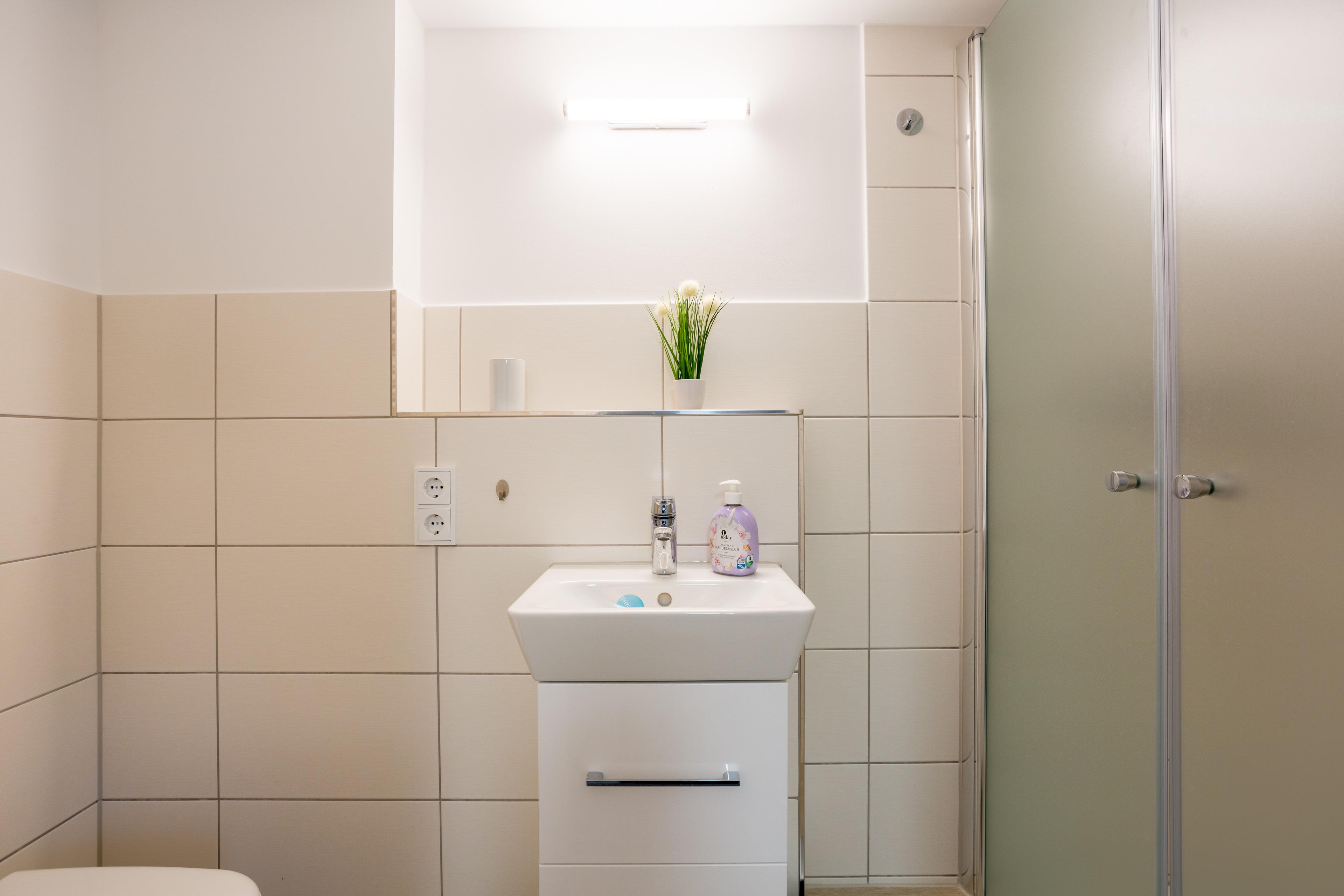 Schicke, neu eingerichtete Gästezimmer/Handwerkerzimmer in einem 2021 fertiggestellten Haus. Die Wohnung liegt im Erdgeschoss. Das 1-Zimmer Apartment verfügt über ein abgeschlossenes Schlafzimmer und einer Küche. Das Doppelbett im Schlafzimmer ist 1,80 m x 2,00 m (auch Einzelbetten möglich) und die Matratzen sind getrennt. Das Duschbad ist hochwertig ausgestattet. Die Wohnung ist mit einem Geschirrspüler, Mikrowelle, Kaffeemaschine, und ausreichend Geschirr und Töpfe ausgestattet. Die Wohnung verfügt über WLAN und TV mit USB-Anschluss.