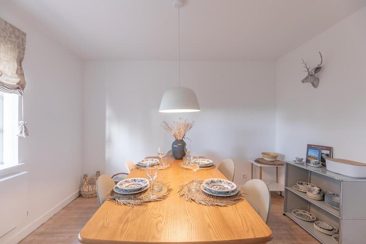 Parterre: (Wohnzimmer(TV(Flatscreen, Satellit), Sitzecke), Esszimmer(Esstisch), Küche(Kaminofen, Kochplatte(4 Kochplatten, Ceranfeld), Wasserkocher, Toaster, Dunstabzugshaube, Kaffeemaschine, Backofen, Spülmaschine, Kühlschrank(+ Gefrierfach)), Badezimmer(Dusche, Waschbecken, Toilette), Toilette(Waschbecken, Toilette)) In der 1. Etage: (Schlafzimmer(Doppelbett(160 x 200 cm)), Schlafzimmer(Einzelbett(90 x 200 cm), Einzelbett(90 x 200 cm))) Heizung, Terrasse, Garten(alleinige Nutzung), Gartenmöbel, Parkplatz, Hochstuhl, Kinderbett (kostenpflichtig), Wäschepaket inklusive
