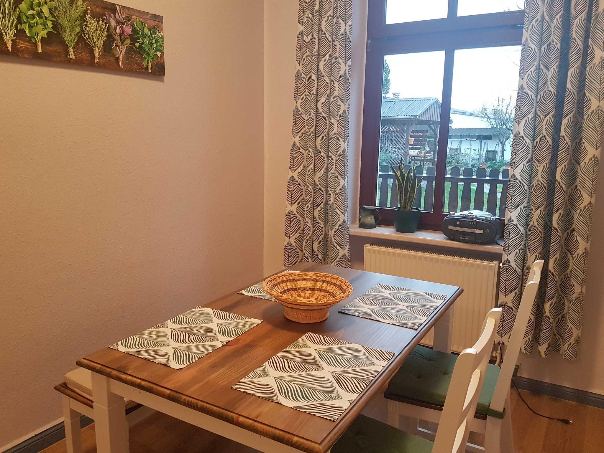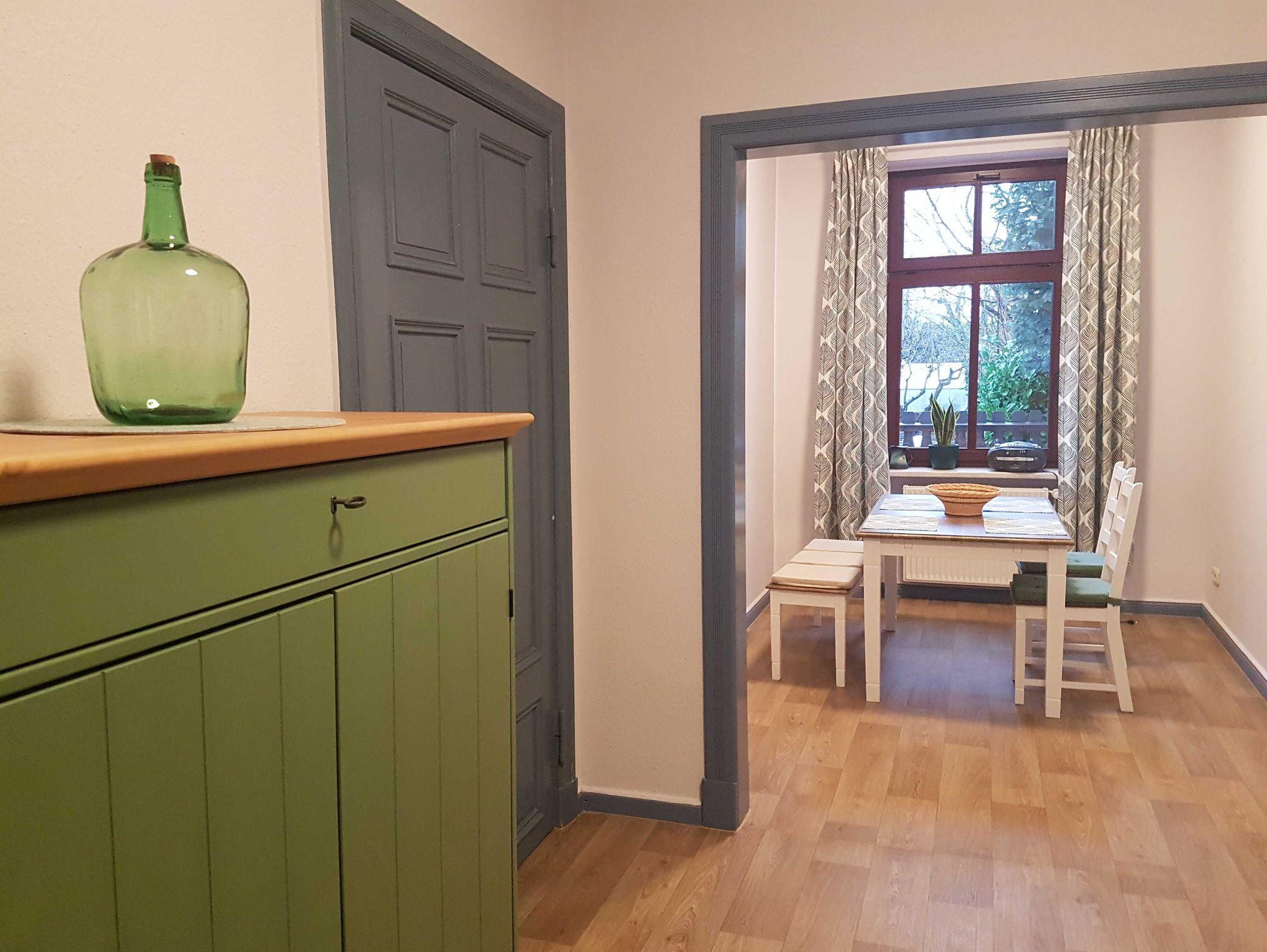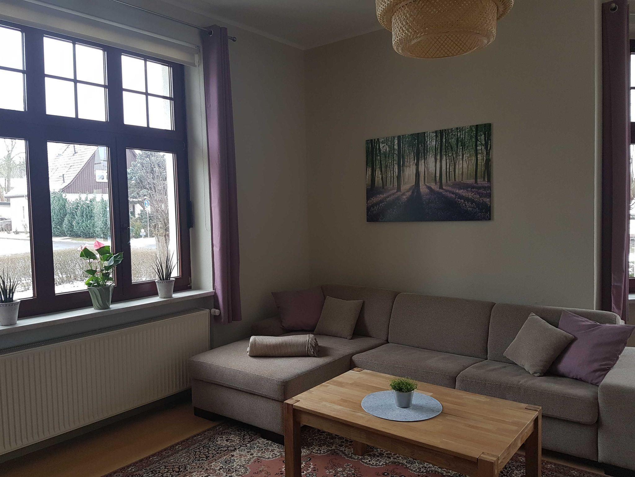 Die Ferienwohnung befindet sich im Erdgeschoss der Moltke-Villa. Große, helle Räume bieten viel Platz zur Entspannung im Urlaub oder nach einem langen Arbeitstag. Die Wohnung verfügt über einen gemütlichen Wohnraum mit separater Leseecke. Die Couch lässt sich zu einem Schlafsofa umfunktionieren, so dass auch bei Belegung mit zwei oder mehreren Personen in separaten Räumen übernachtet werden kann. Das Schlafzimmer ist mit einem Doppelbett ausgestattet. Auf Wunsch kann ein Schlafsessel mit wenigen Handgriffen zu einer vollwertigen Aufbettung umgebaut werden.