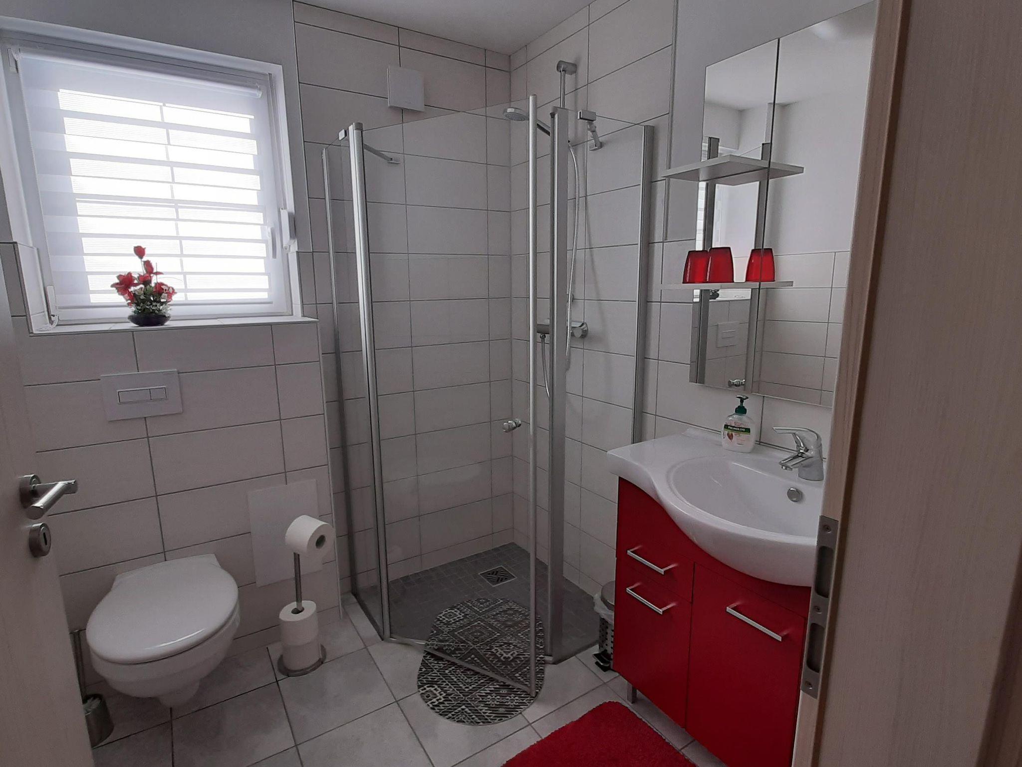 Alle Doppelbettzimmer verfügen über ein eigenens Bad mit Dusche und WC. Ein gemeinsam nutzbarer Kühlschrank steht allen Gästen kostenfrei zur Verfügung. W- Lan sowie ein kostenfreier Stellplatz dür PKW sind ebenfalls kostenfrei.