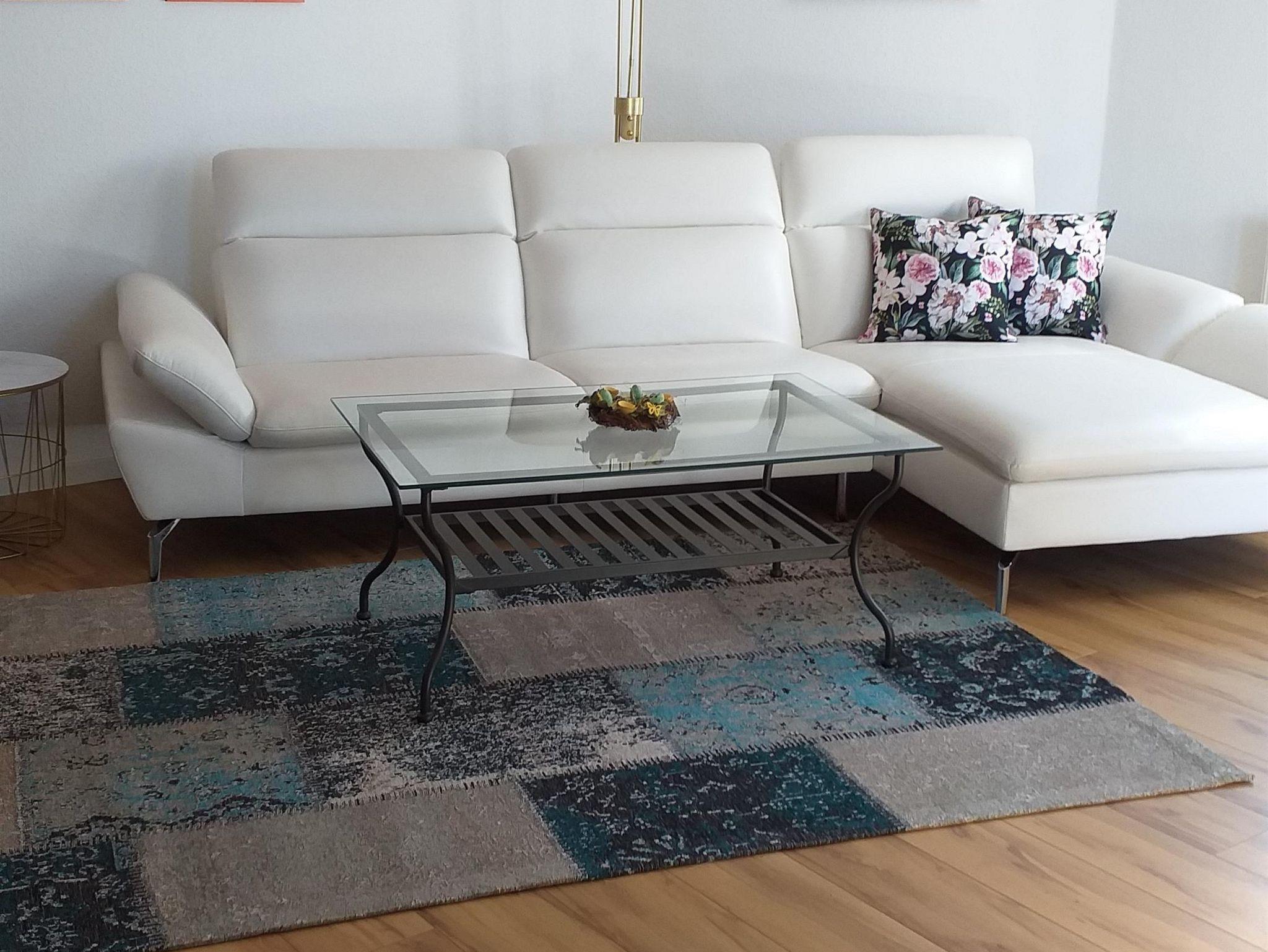 Modern eingerichtete Ferienwohnung mit Wohnzimmer, Kabel-TV, Sitzecke. Schlafzimmer mit Doppelbett (2m x 1,60m), Küche mit Einbauküche, Esstisch,