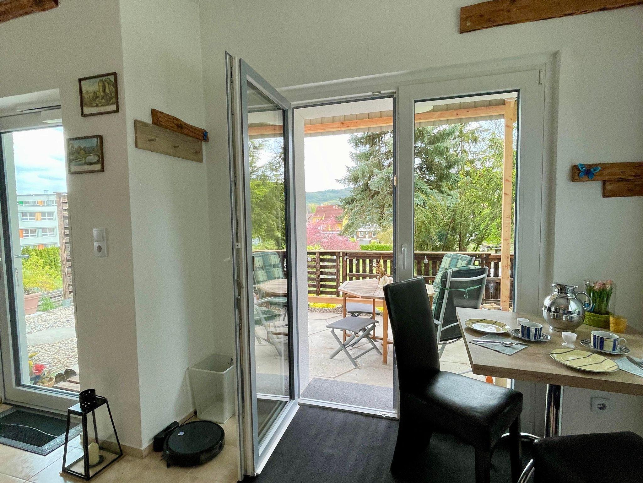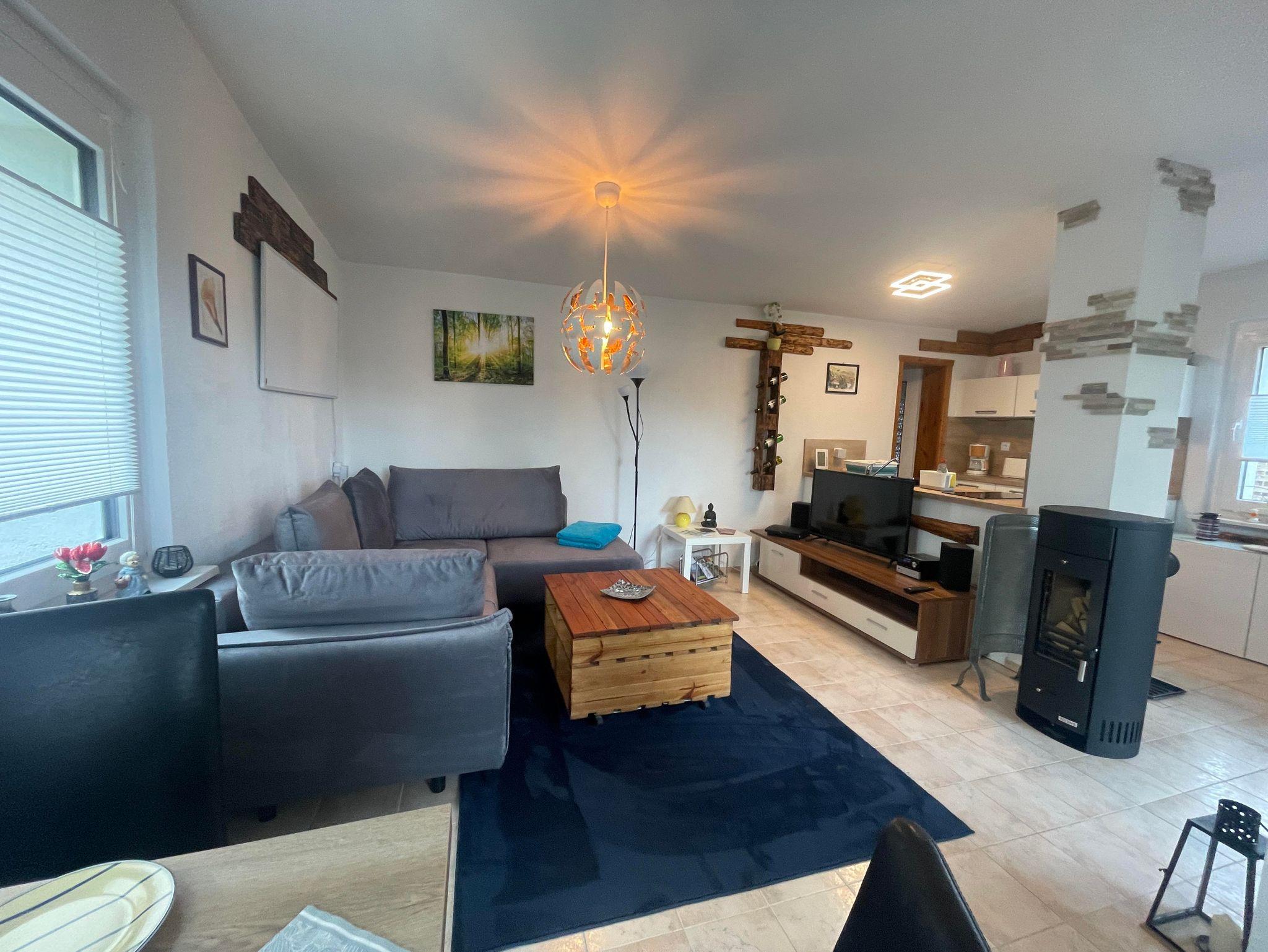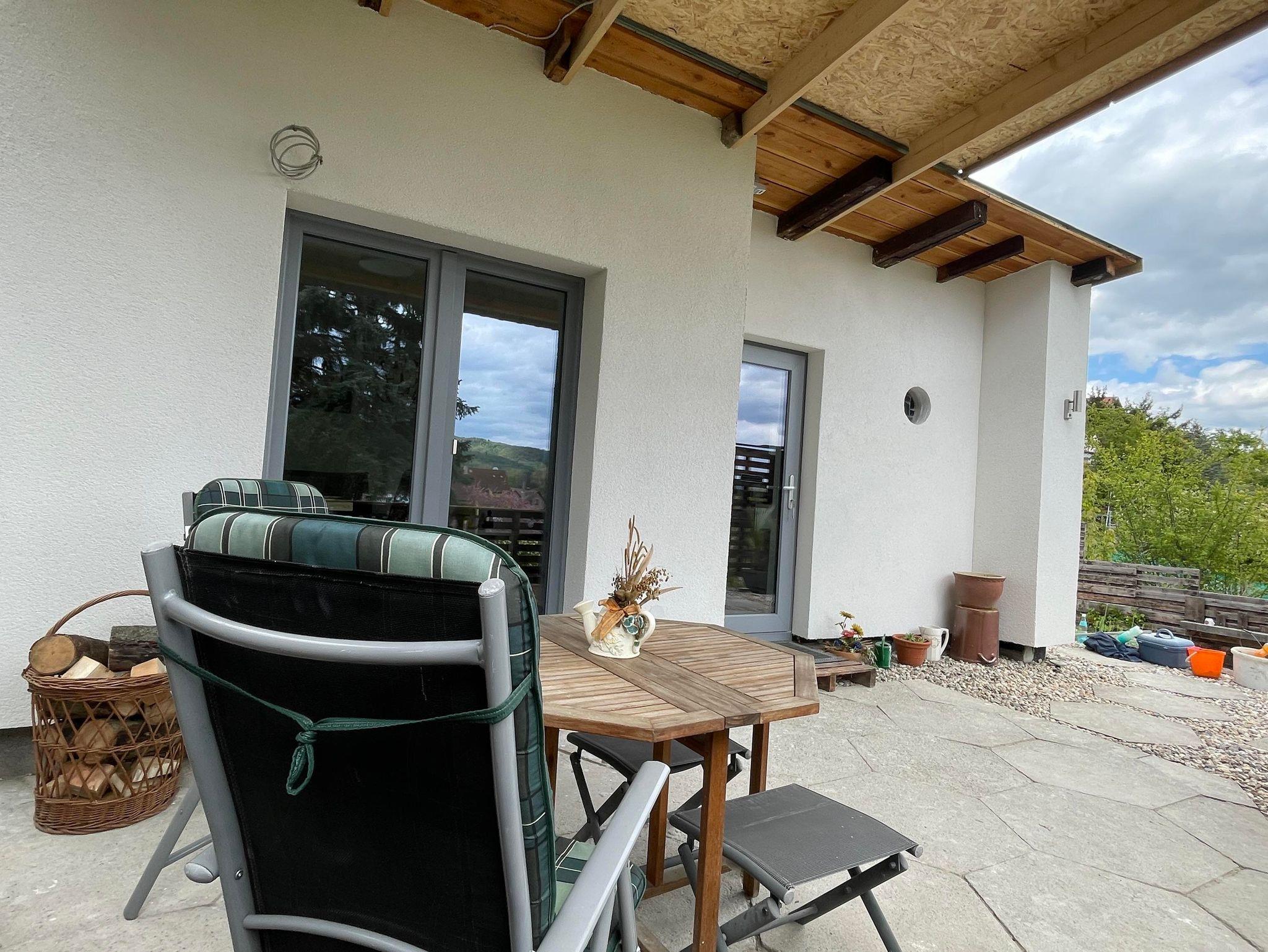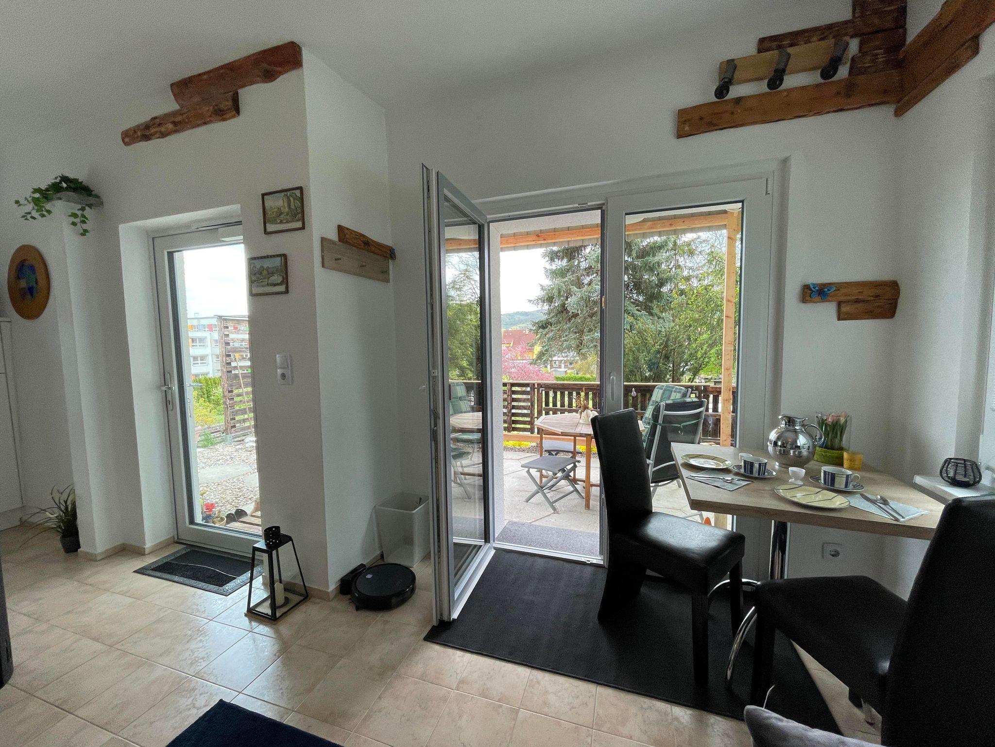 Unser Häuschen ist modern und gemütlich eingerichtet. Es steht komplett im Grünen auf Privatboden. Sie sind für sich allein in der Natur... In der Wohnung ist Platz für 2 Personen. Wir haben 1 Schlafzimmer mit einem Boxspringbett (160 cm breit). Das große Sofa im Wohnzimmer Bereich könnte auch eine 3. Person, zur Ausnahme, beherbergen. Sie finden dort eine neu eingebaute Küche mit: Herdplatten, Backofen, Mikrowelle, Kaffeemaschine, Toaster, Wasserkocher und Kühl- und Gefrierkombination. Das Badezimmer ist zweckmäßig eingerichtet mit Dusche, Waschbecken, WC. Draußen können Sie die geräumige Terrasse genießen mit vorhandenen Gartenmöbeln, Sonnenschirm und Grill. Sie haben von dort aus einen herrlichen Blick auf die Stadt Thale und die Harzregion. Einen Parkplatz finden Sie direkt an der Hauptstraße oder ca. 100 Meter weiter, direkt an der Ferienwohnung.