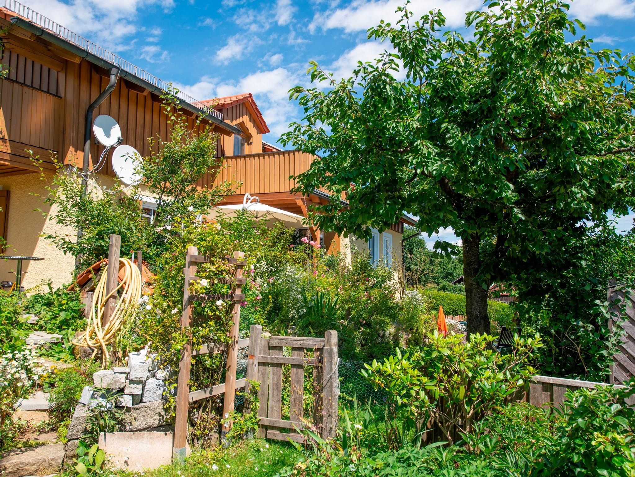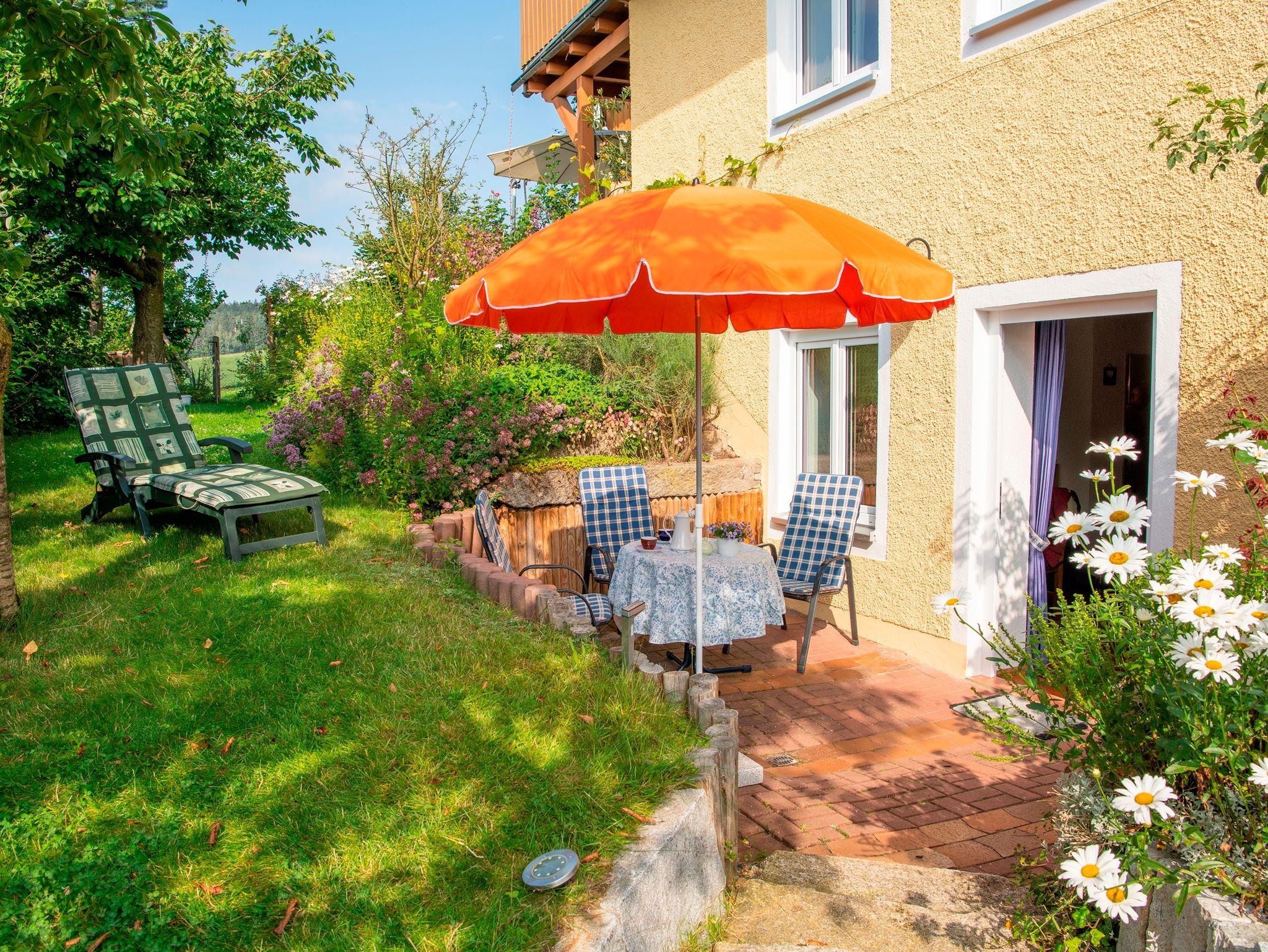 Hier können Sie die Seele baumeln lassen - unterm Sonnenschirm auf Terrasse eine Tasse Kaffee - ein Feierabendbier trinken - inmitten eines naturnahen Gartens.