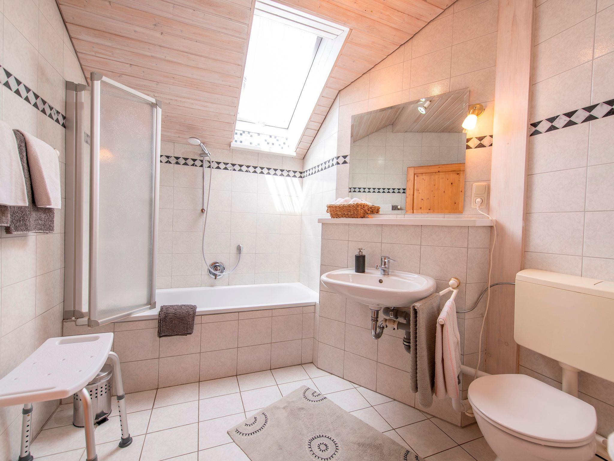 Das Bad ist ausgestattet mit einer Dusche, WC sowie einem Waschbecken. Es handelt sich um ein Nichtraucherzimmer.