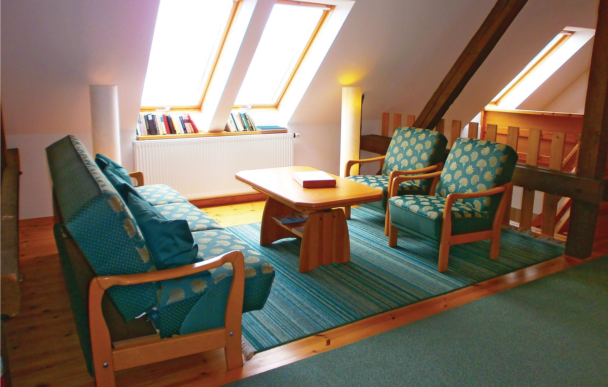 Umringt von Wald und Feldern begrüßt Sie diese gemütliche Ferienwohnung, in der Sie mit Ihren Liebsten zur Ruhe kommen und gemeinsame Zeit verbringen können. Freuen Sie sich nach einem langen Tag an der frischen Luft auf die behagliche Atmosphäre im Wohnzimmer. Servieren Sie sich ein warmes Süppchen und machen Sie es sich für einen harmonischen Spieleabend oder entspannte Lesestunden auf dem Sofa gemütlich.