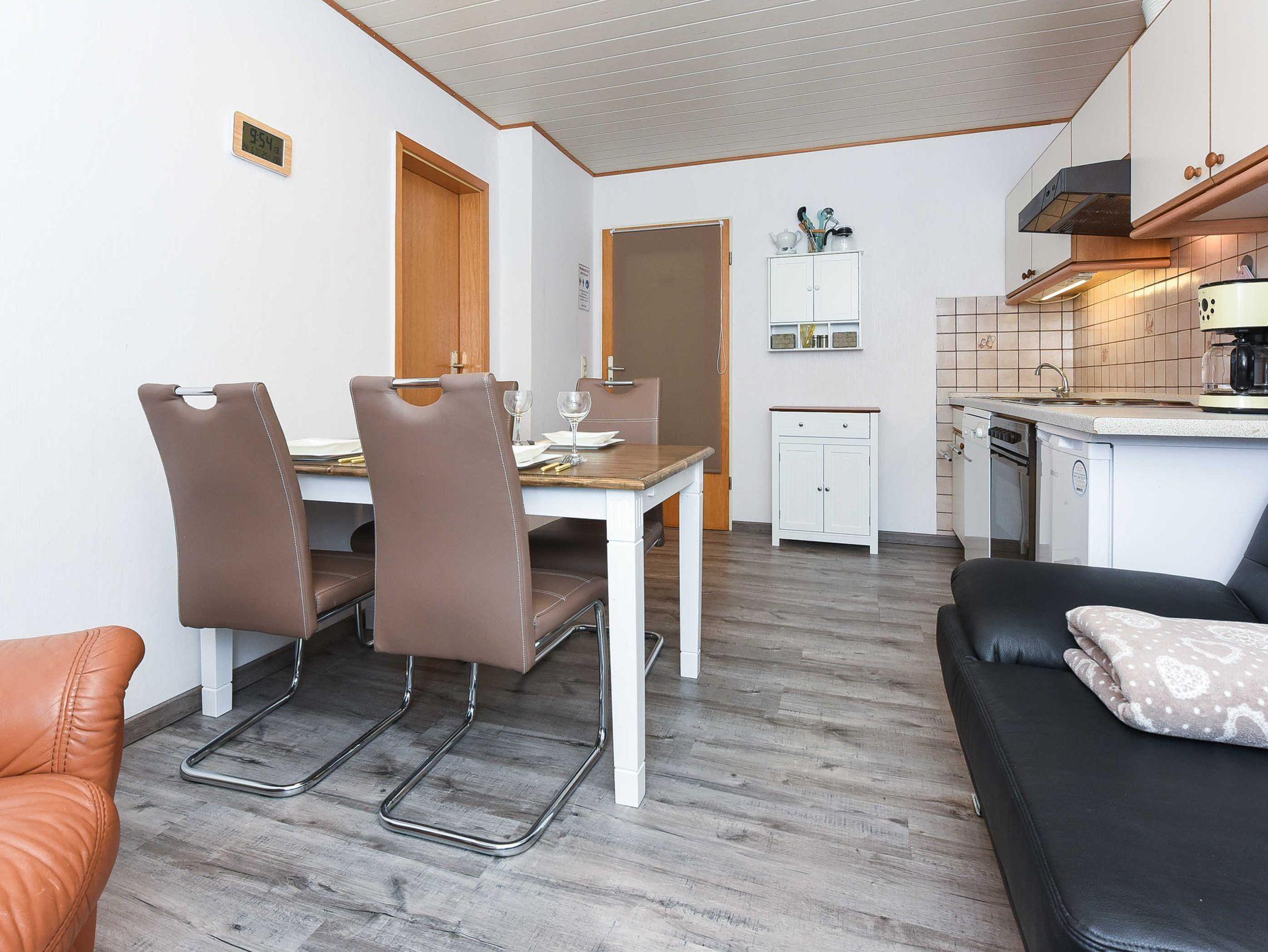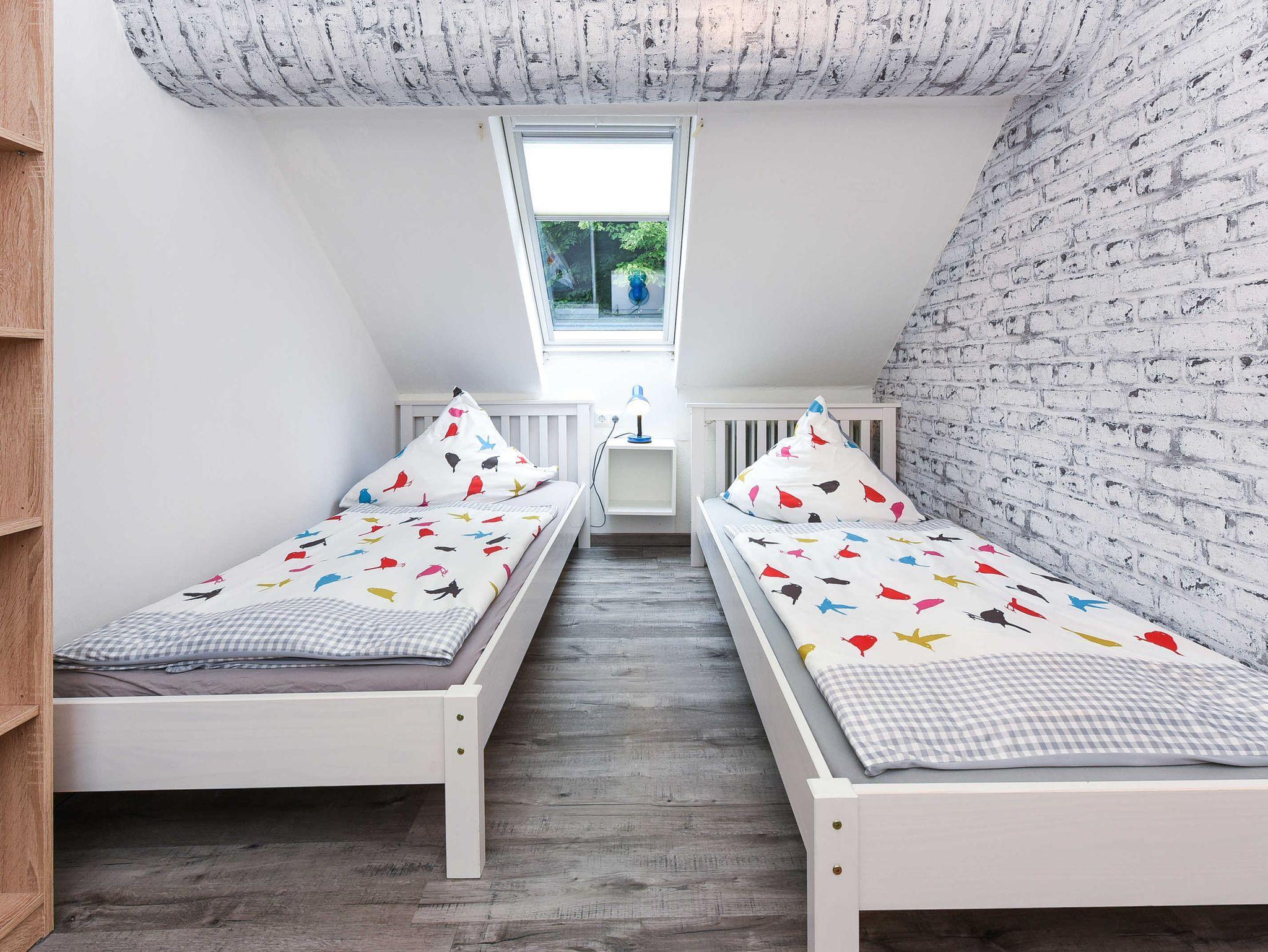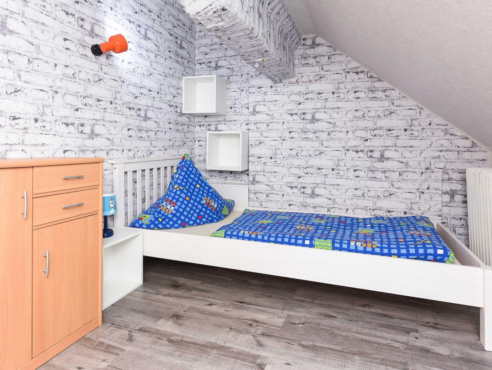 Größe ca. 50 Quadratmeter, Wohnraum mit integrierter Küche, Schlafzimmer, Kinderzimmer, zweites separates Kinderzimmer, Badezimmer mit Dusche, Waschtisch und WC, Obergeschoss, Internetzugang über WLAN möglich, optimal für 2 bis 4 Personen und zusätzlich ein Kleinkind.