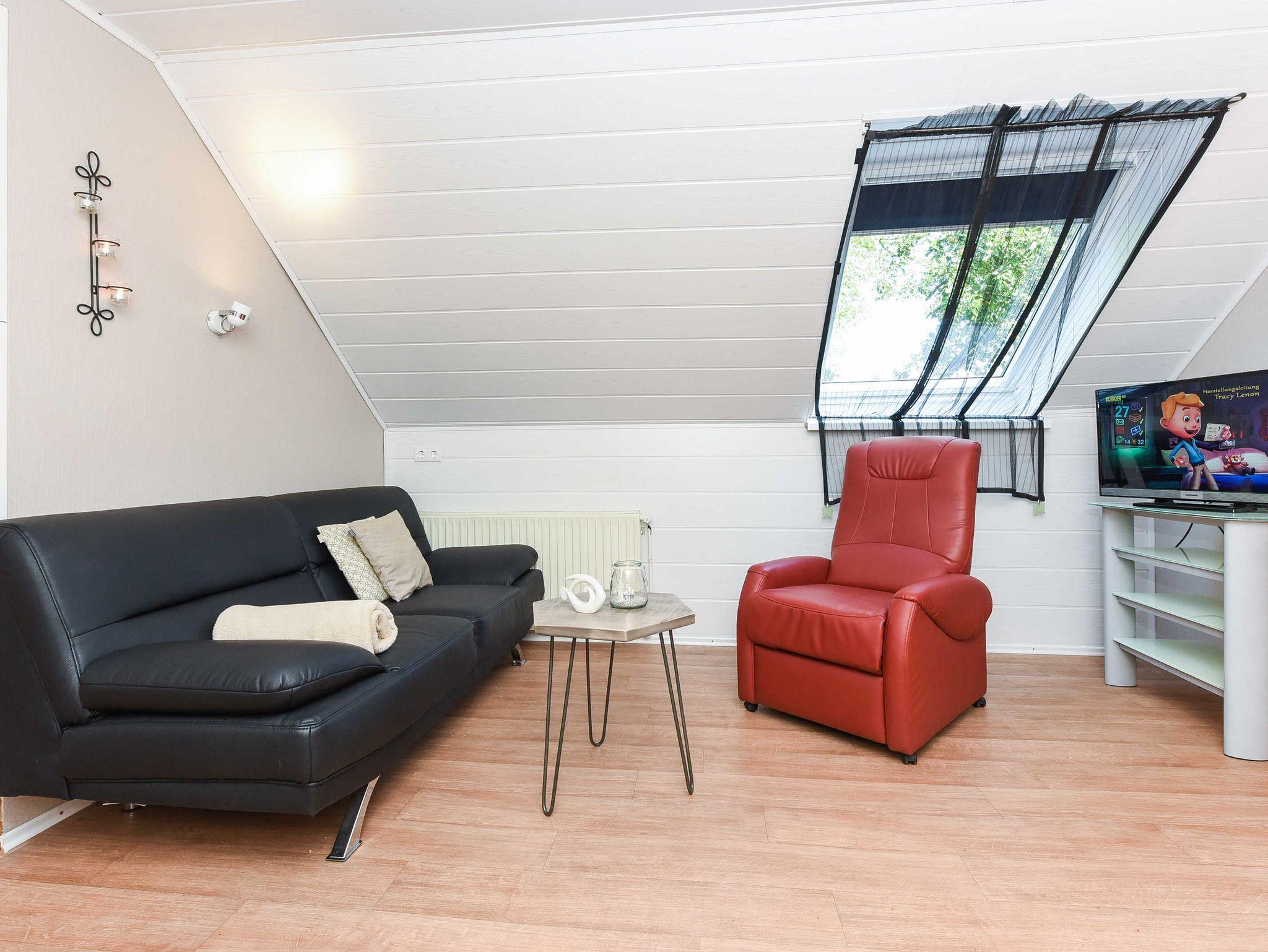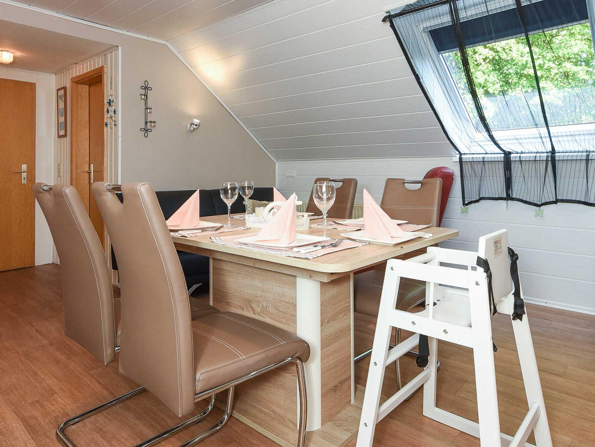 Größe ca. 45 Quadratmeter, Wohnraum mit integrierter Küche, Schlafzimmer, zweites separates Schlafzimmer/Kinderzimmer, Badezimmer mit Dusche, Waschtisch und WC, Obergeschoss, Internetzugang über WLAN möglich, optimal für 2 bis 4 Personen und zusätzlich ein Kleinkind.