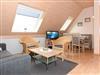 Größe ca. 45 Quadratmeter, Wohnraum mit integrierter Küche, Schlafzimmer, zweites separates Schlafzimmer/Kinderzimmer, Badezimmer mit Badewanne, Dusche und WC, Obergeschoss, Gästeterrasse, optimal für 2 bis 3 Personen und zusätzlich ein Kleinkind.