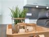 In der modernen Küchenecke bringt das Zubereiten der Speisen in der Gruppe Freude. Eine eingebaute Geschirrspülmaschine übernimmt anschließend den Abwasch, während Sie bei einem Wein auf dem Balkon den Tag Revue passieren lassen. Die Glasumrundung des Balkons schützt vor frischen Winden und lässt den Blick frei auf die wunderschöne Eider.