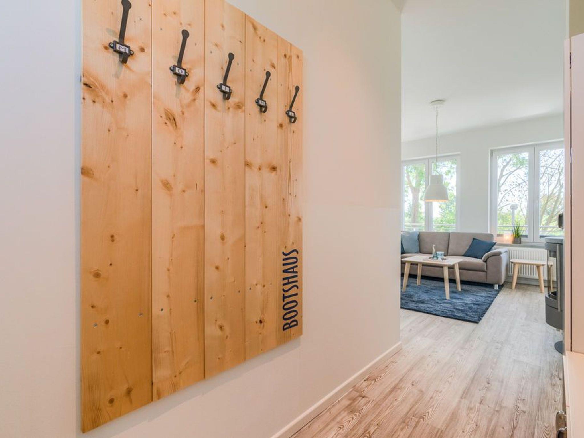 Das Bootshaus erhielt seinen Namen wegen seiner Nähe zum benachbarten Bootsanleger der Gemeinde Tielen. Entsprechend spiegeln sich die Elemente des Wassers und der Natur in den Wandfarben und der rustikalen Einrichtung wieder.